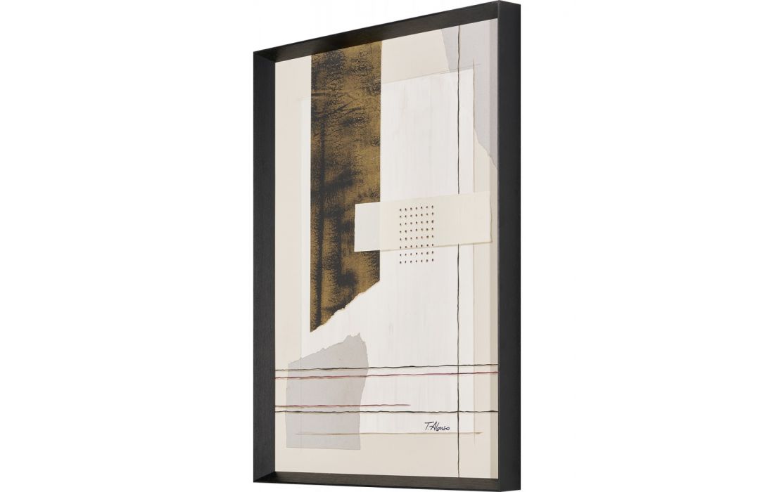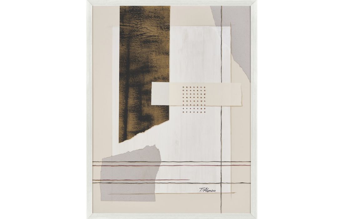 Pintura original abstrata da autora Teresa Alonso em tela com moldura de madeira, opções de cores branco e preto