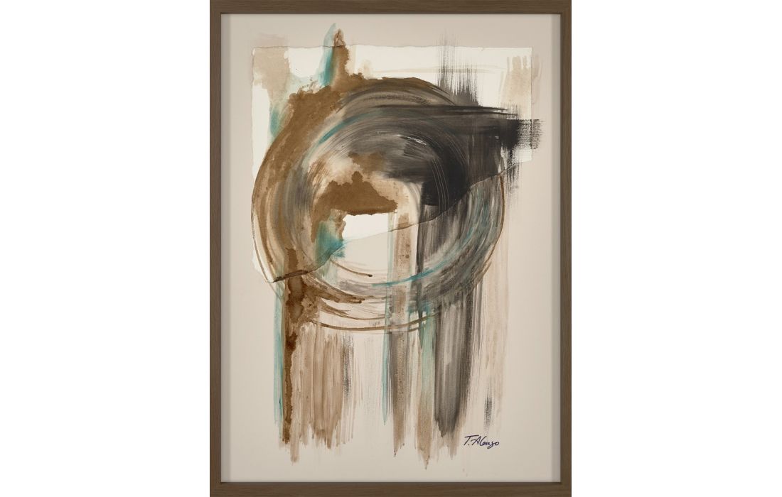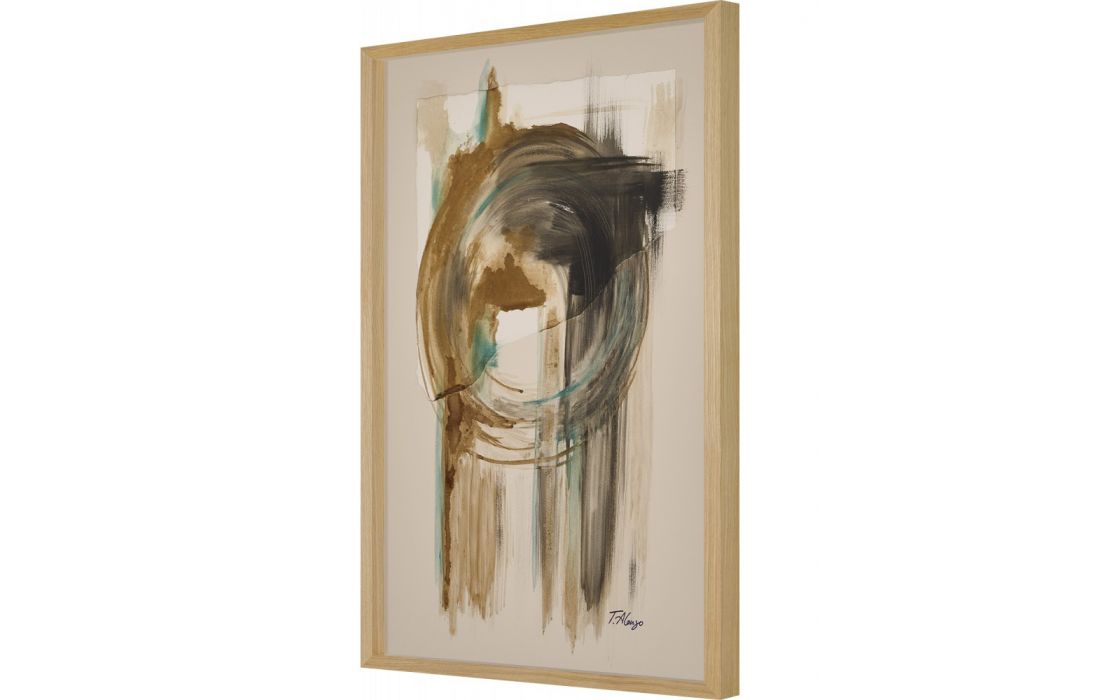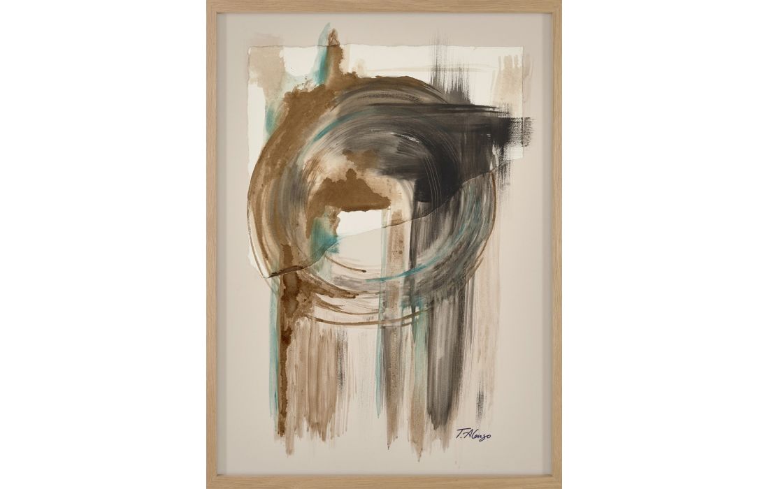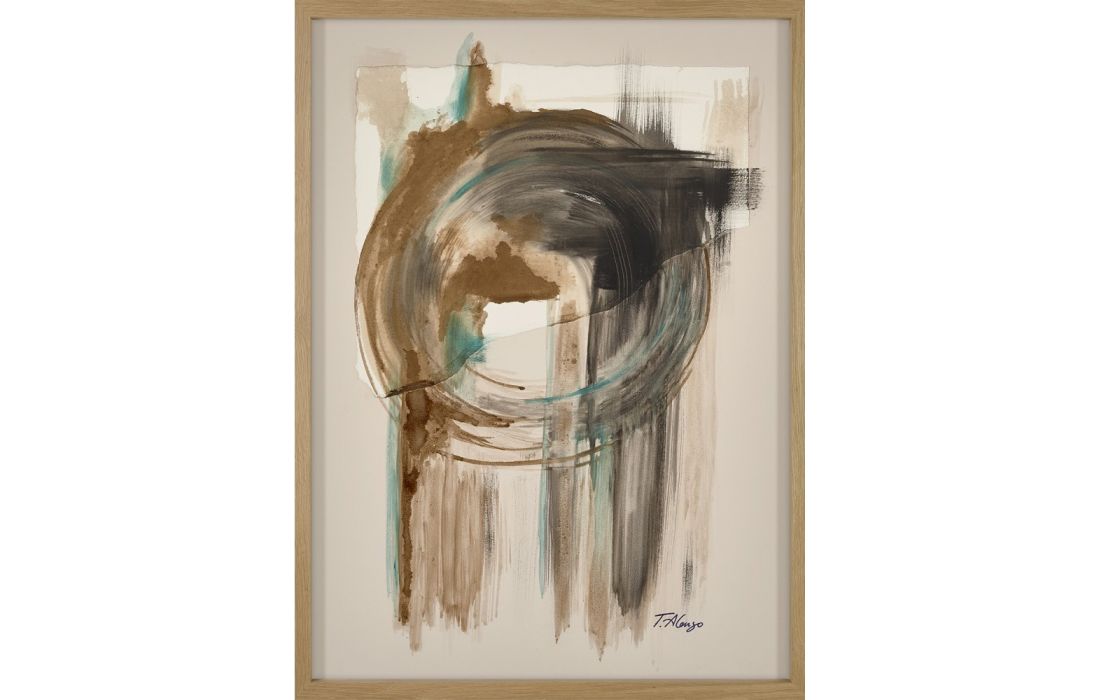 Pintura original abstrata da autora Teresa Alonso em tela com moldura de madeira, opções em faia, carvalho, nogueira e wengué