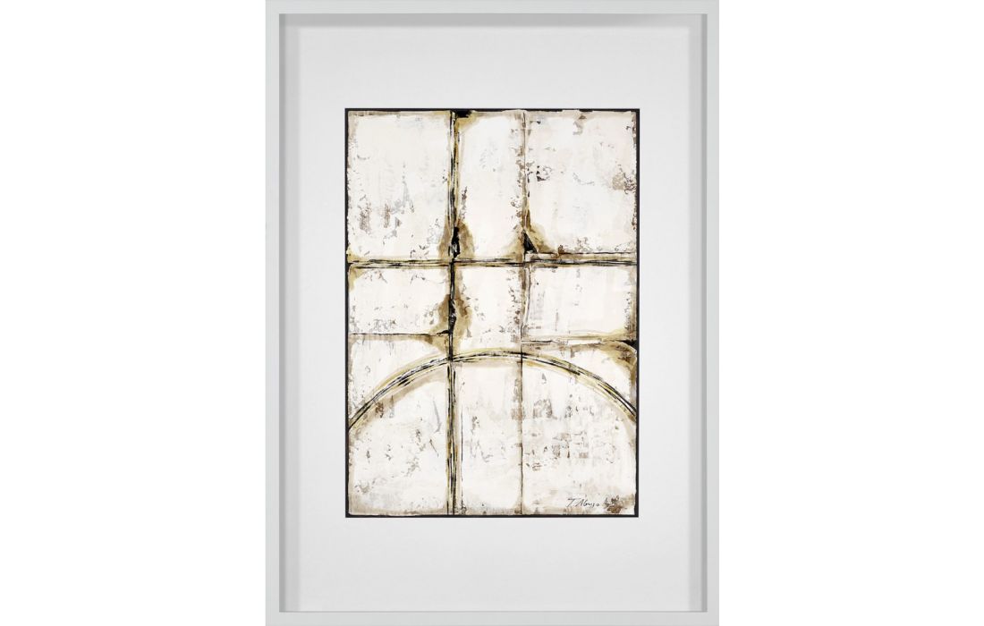 Pintura original abstrata da autora Teresa Alonso em tela com vidro e moldura de madeira, opções em lacado preto e branco
