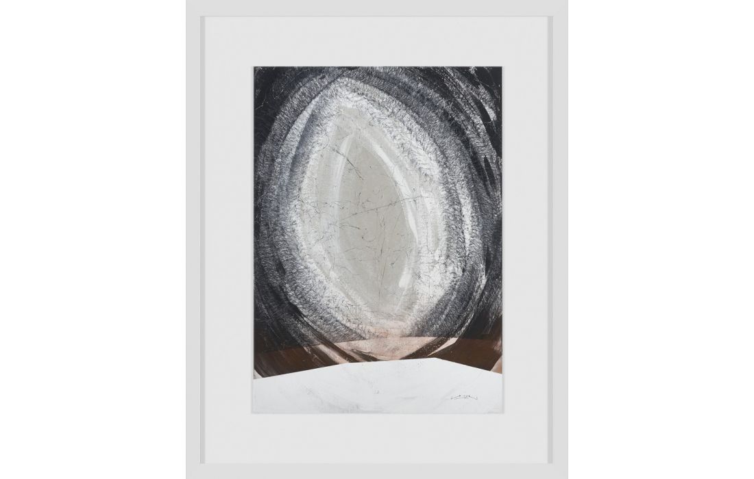 Pintura original abstrata do autor David Siver em tela com moldura de madeira, opções nas cores lacado branco e preto