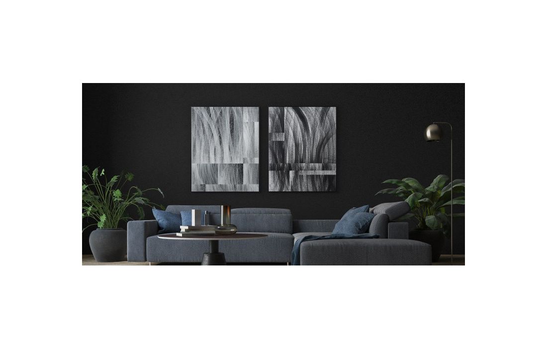 Pintura original abstrata do autor David Siver em tela ou com moldura, opções nas cores branco, preto e cinza