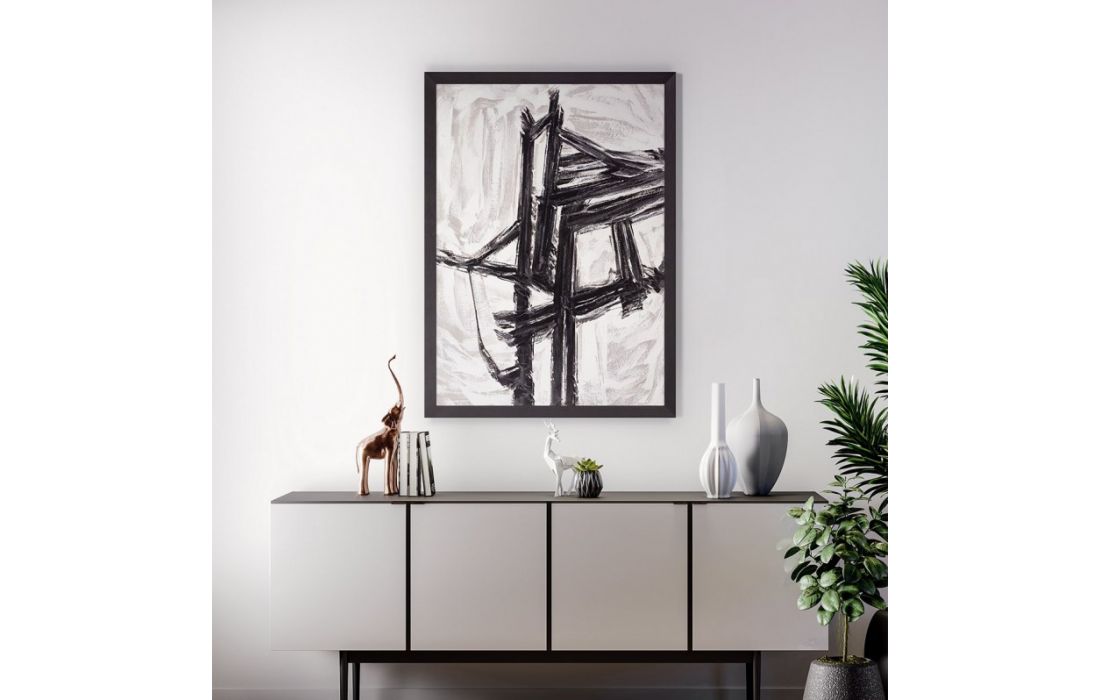 Pintura original abstrata da autora Diana Fuertes em tela com moldura de madeira, opções nas cores lacado branco e preto