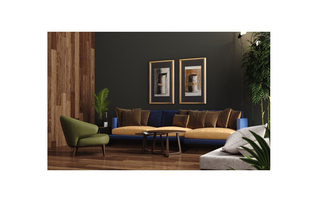 Pintura original do autor Diego Serra em tela com moldura de madeira cor dourada com vidro