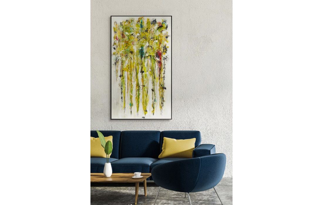Pintura original do autor Vicente Marzal em tela ou com moldura de madeira, opções nas cores preto, branco e cinza escuro