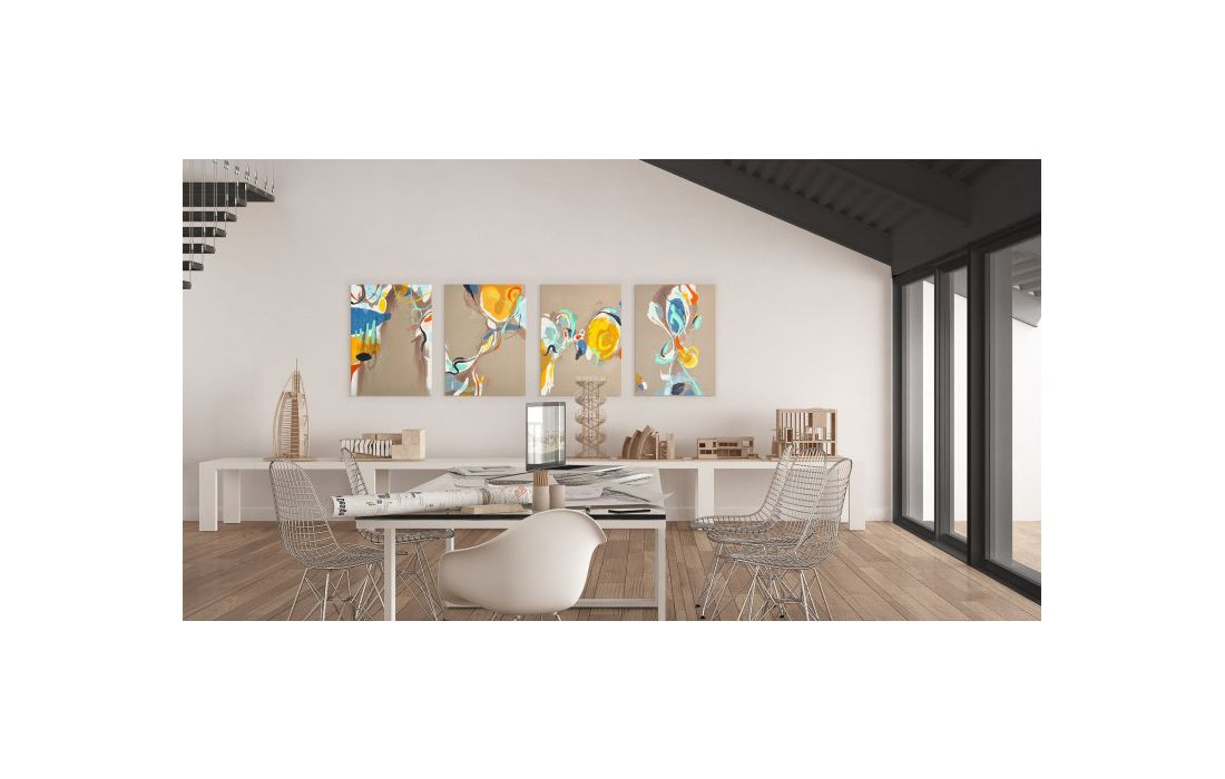 Pintura original do autor David Siver em tela ou com moldura de madeira, opções nas cores preto, branco, cinza escuro e cinza claro