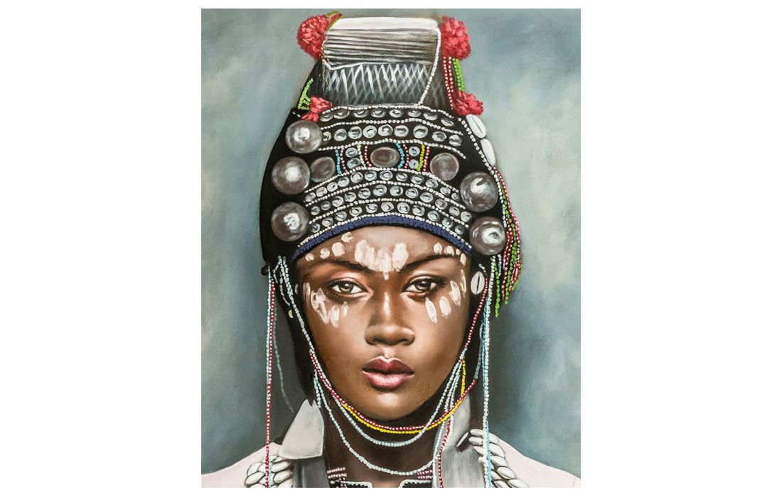 Pintura artesanal em madeira de pinho com tela estilo étnico multicolor