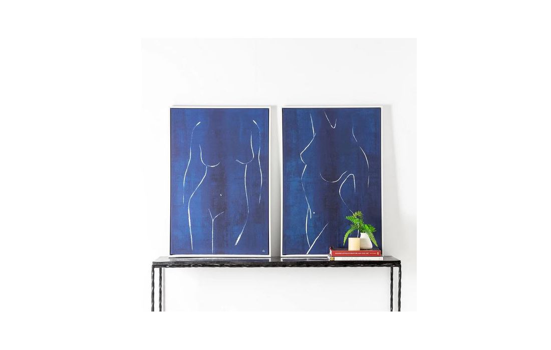 Quadro pintado em tela com moldura de poliestireno cor branca