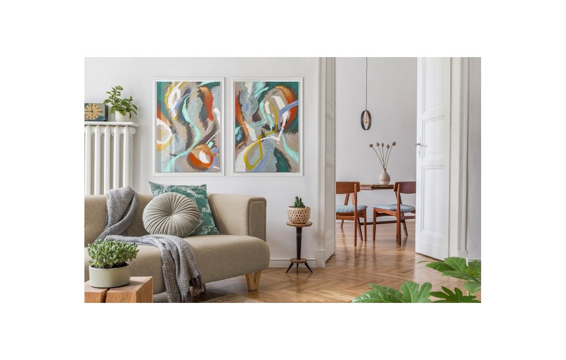 Pintura original do autor David Siver com vidro e moldura de madeira, opções nas cores preto e branco