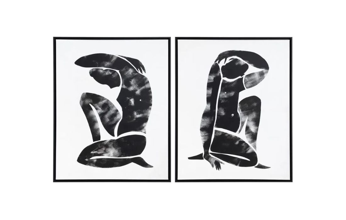 Conjunto de 2 quadros em tela pintada à mão com moldura em madeira de ayous
