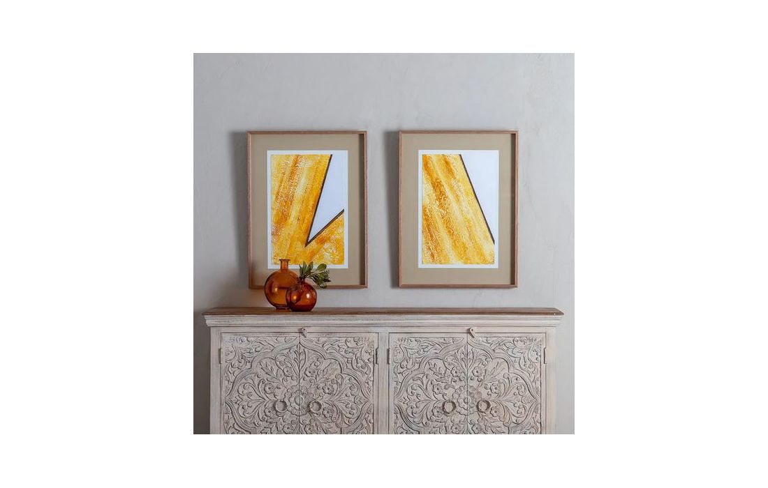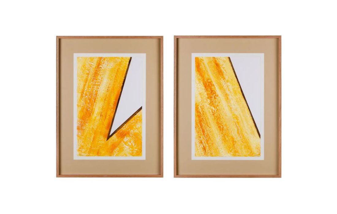 Conjunto de 2 quadros pintados à mão com moldura em madeira de ayous