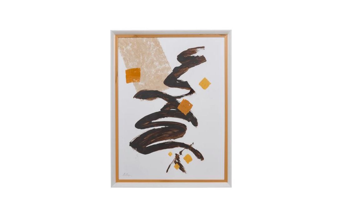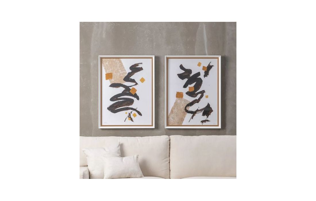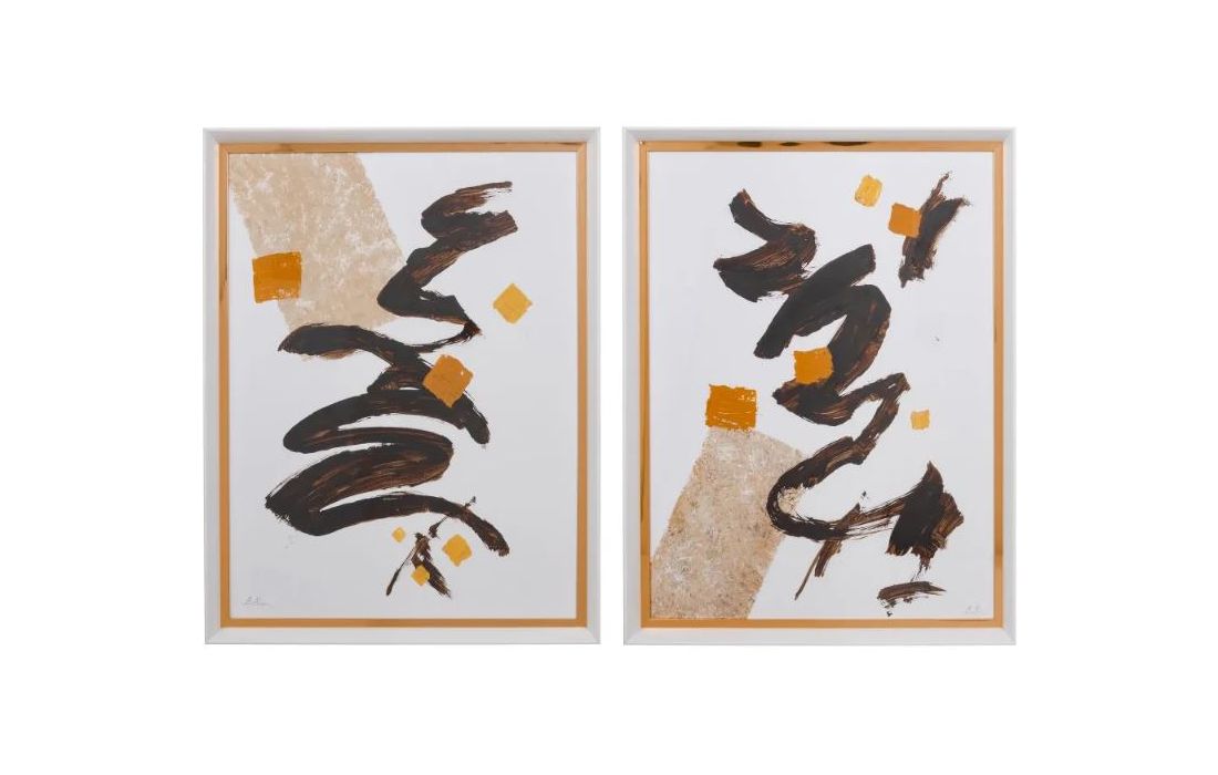 Conjunto de 2 quadros pintados à mão com moldura em madeira de ayous