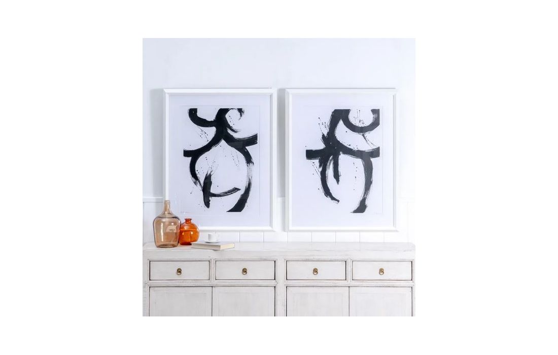 Conjunto de 2 quadros pintados à mão com moldura em madeira de ayous