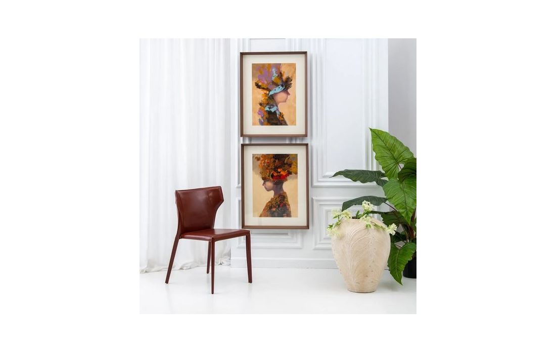 Conjunto de 2 quadros com moldura em madeira de pinho