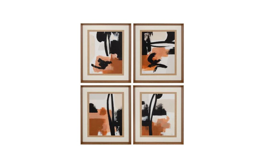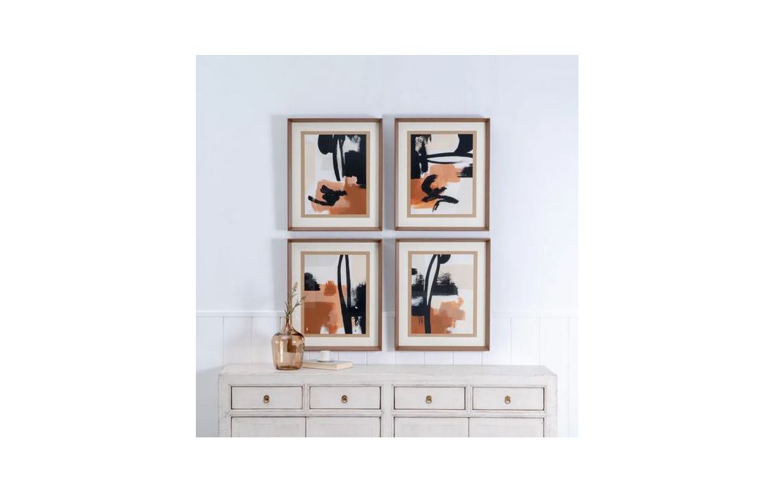 Conjunto de 4 quadros pintados à mão com moldura em madeira de ayous