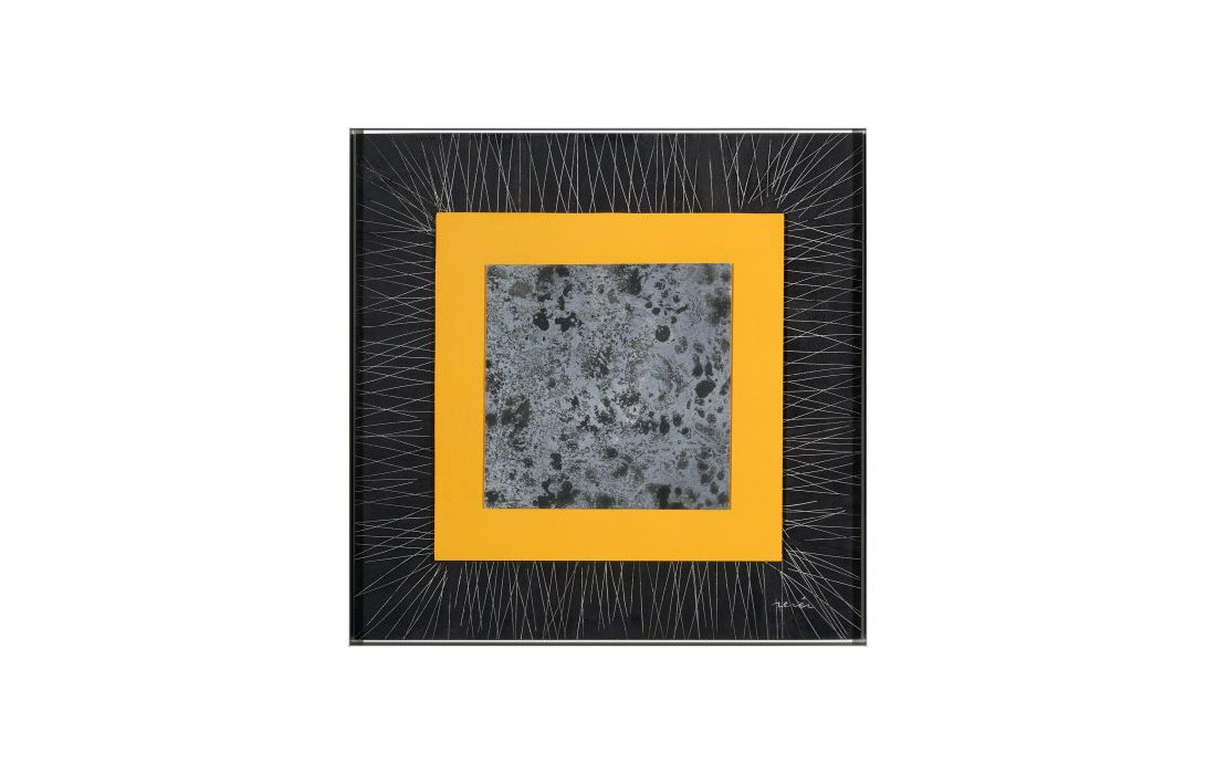 Pintura original da autora Amparo Rêver em alumínio escovado com moldura minimalista prata