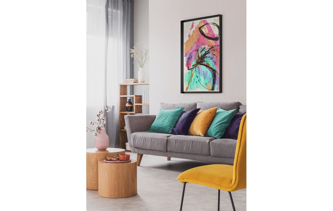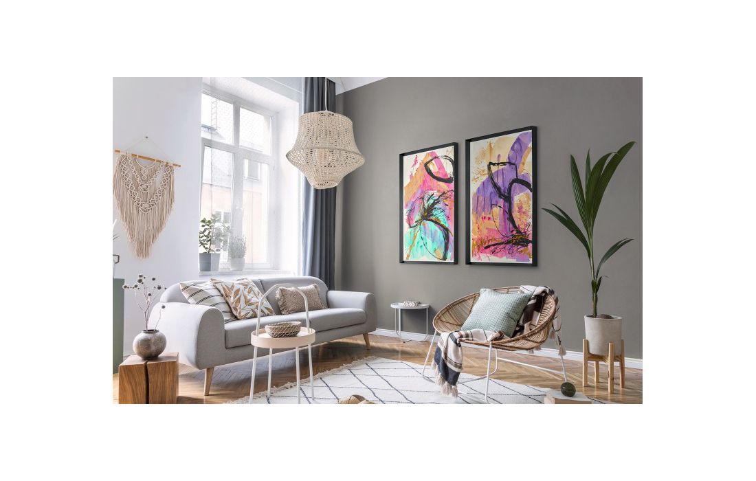 Pintura original da autora Marina Nova com vidro e moldura de madeira, opções nas cores branca e preta