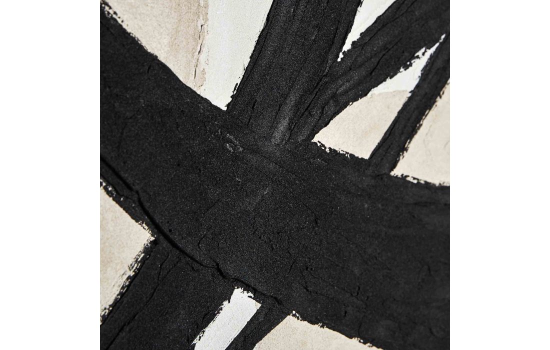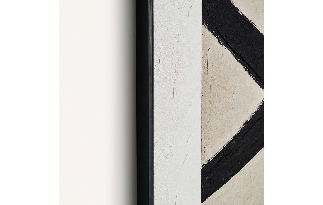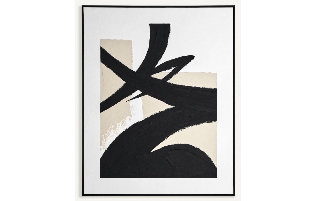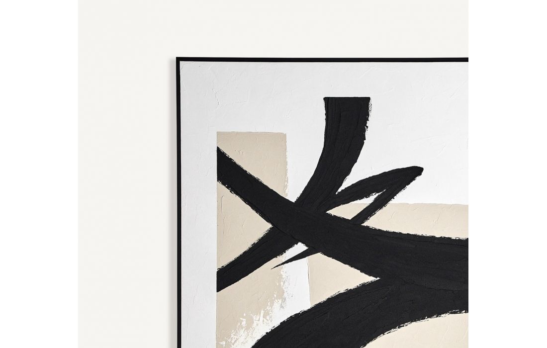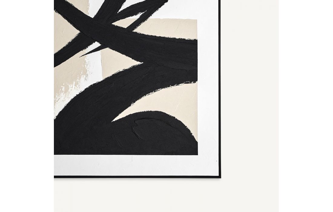 Quadro pintado em tela a tinta de óleo preta/branca, estilo contemporâneo com moldura em madeira de pinho cor preta