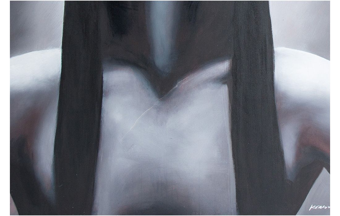 Pintura em tela de estilo contemporánio cor cinza/preto pintada à mão