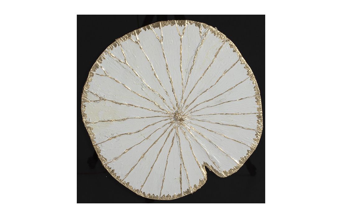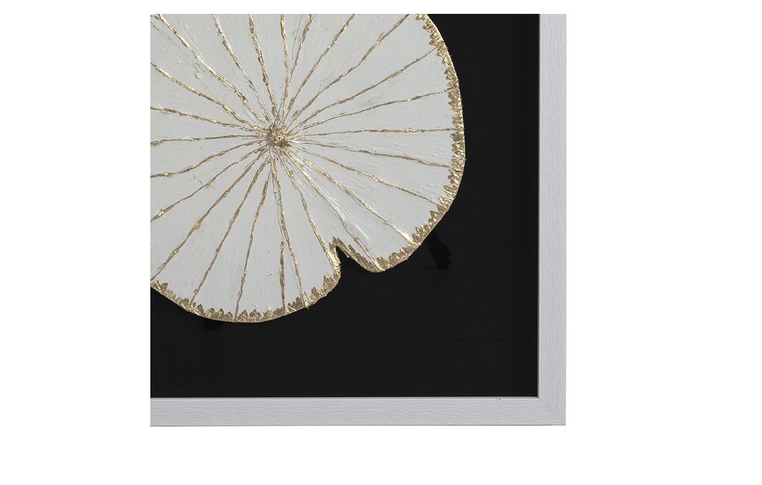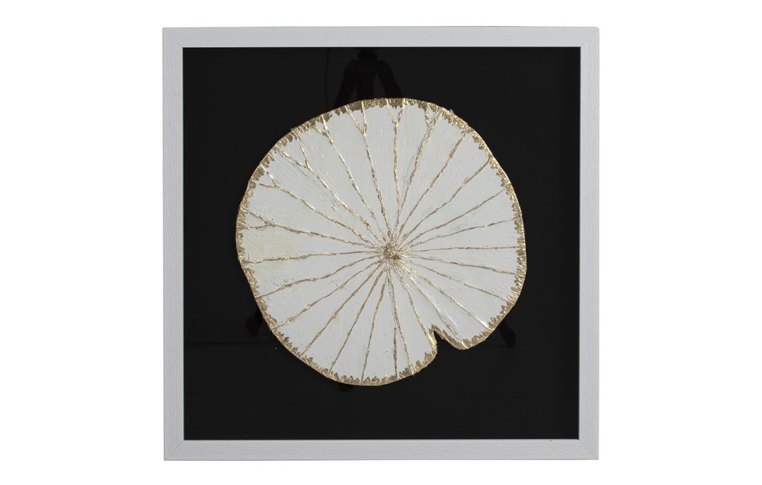Quadro quadrado em madeira cor branco/dourado com vidro