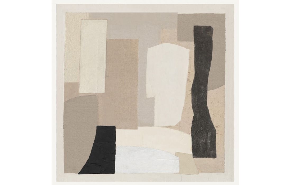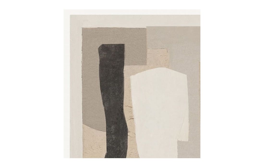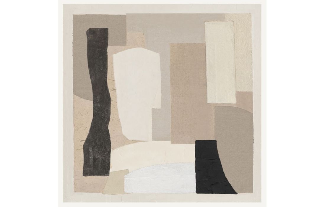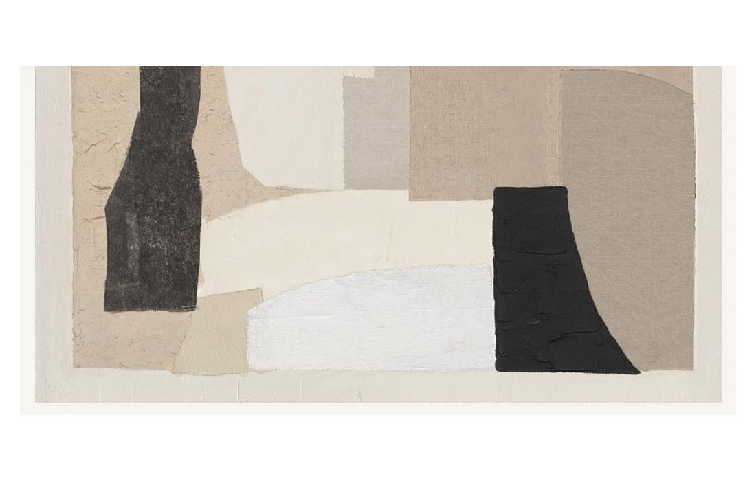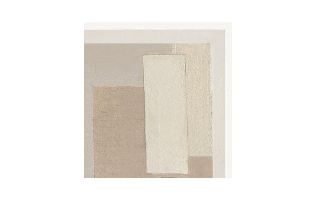 Pintura estilo comtemporâneo feita em madeira de pinho combinada com lona em tons claros