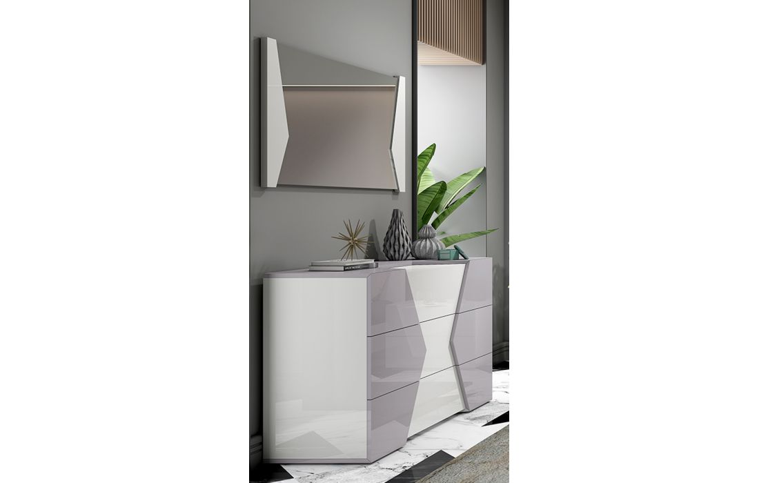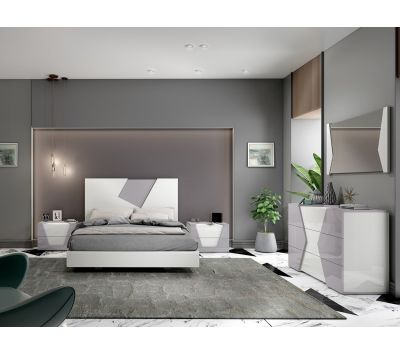Acabamento igual à imagem: Lacado branco mate com pormenores em lacado cinza mate