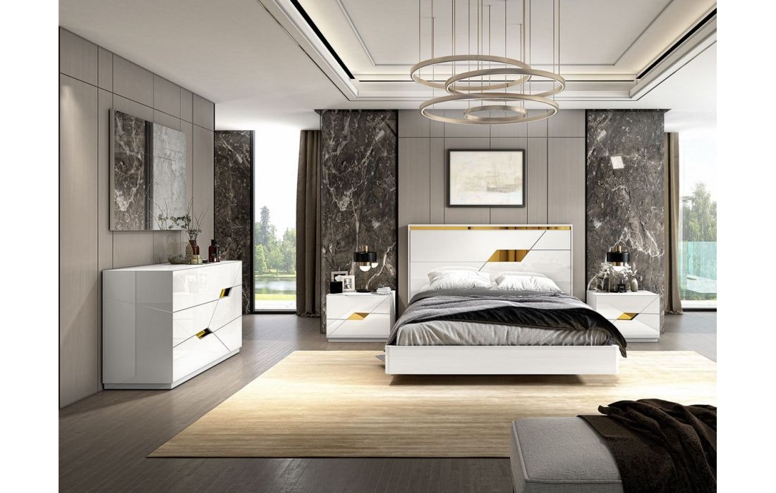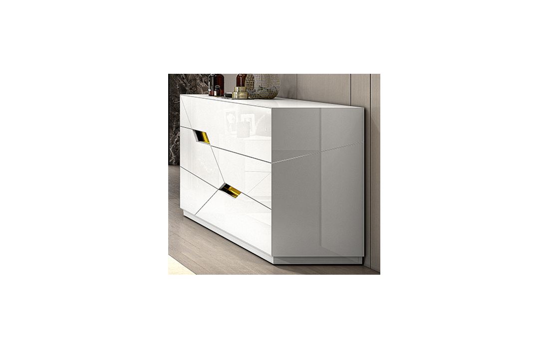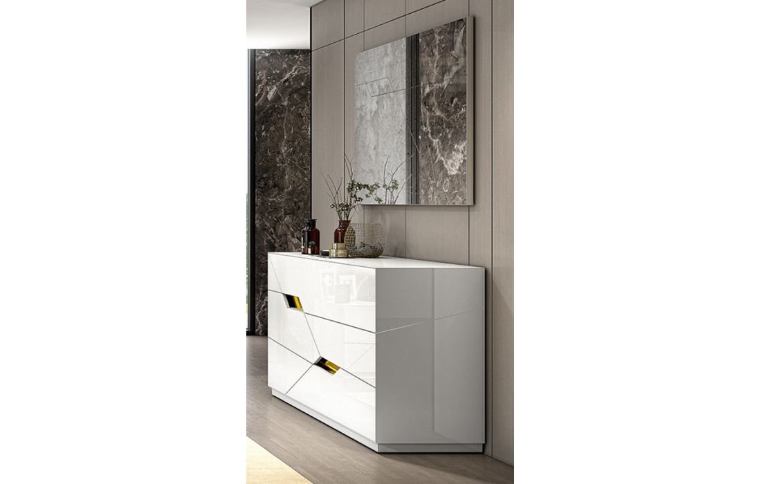 Acabamento igual à imagem: Lacado branco com pormenores em dourado.