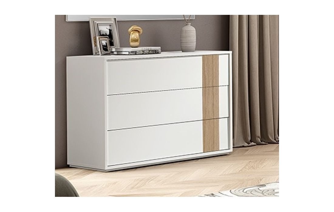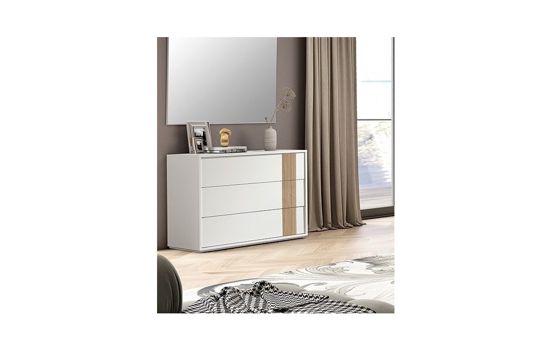 Acabamento igual à imagem: Lacado branco mate com pormenores em carvalho