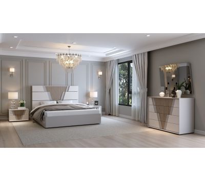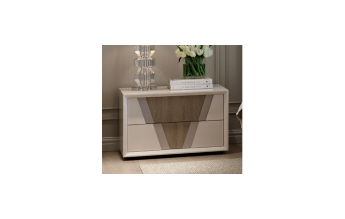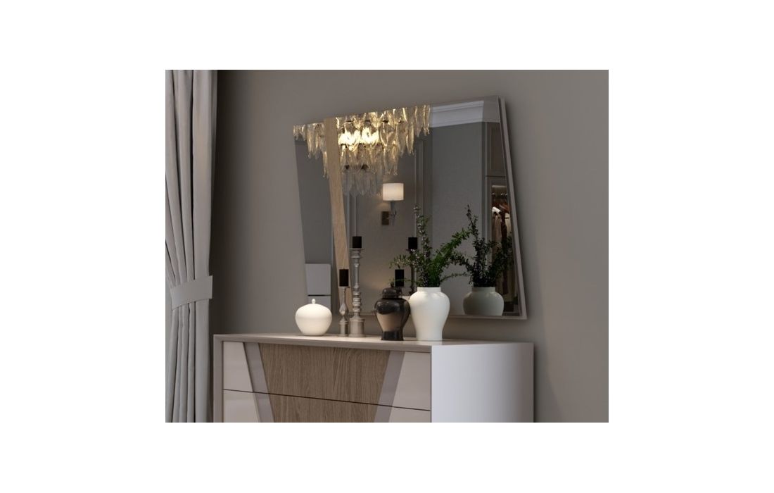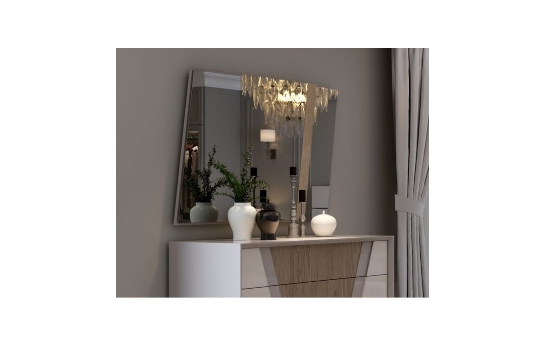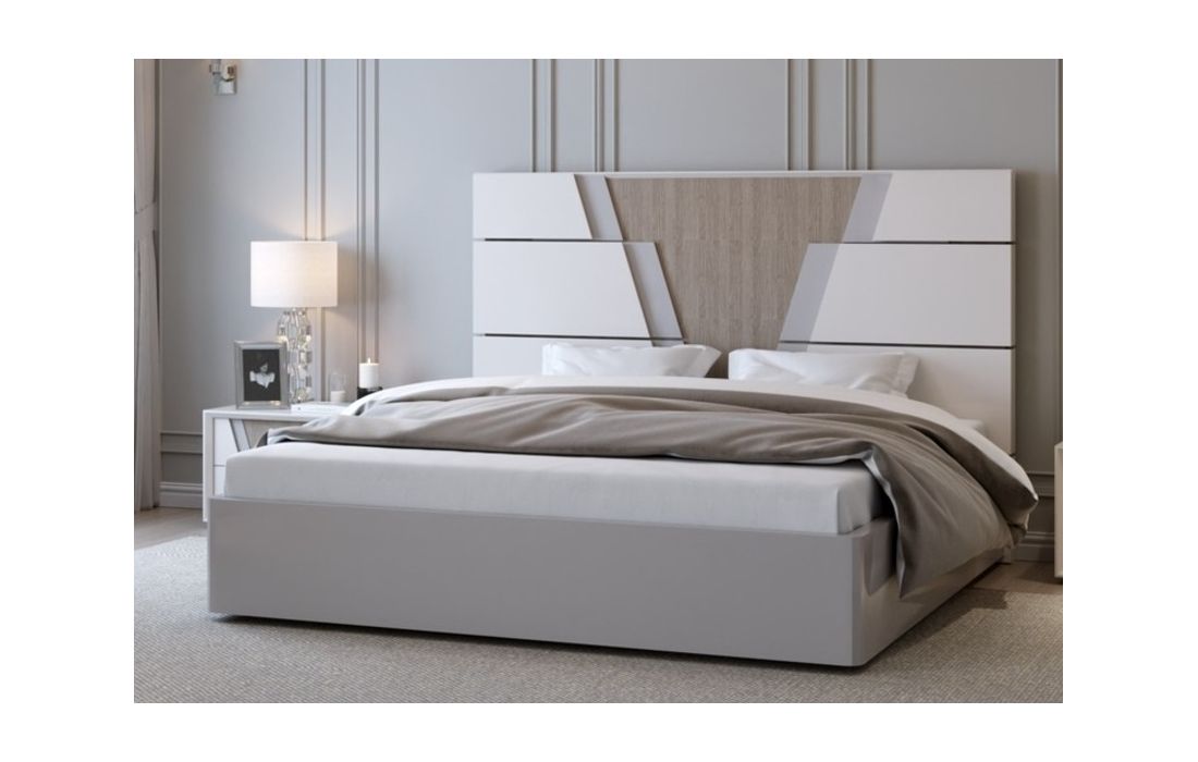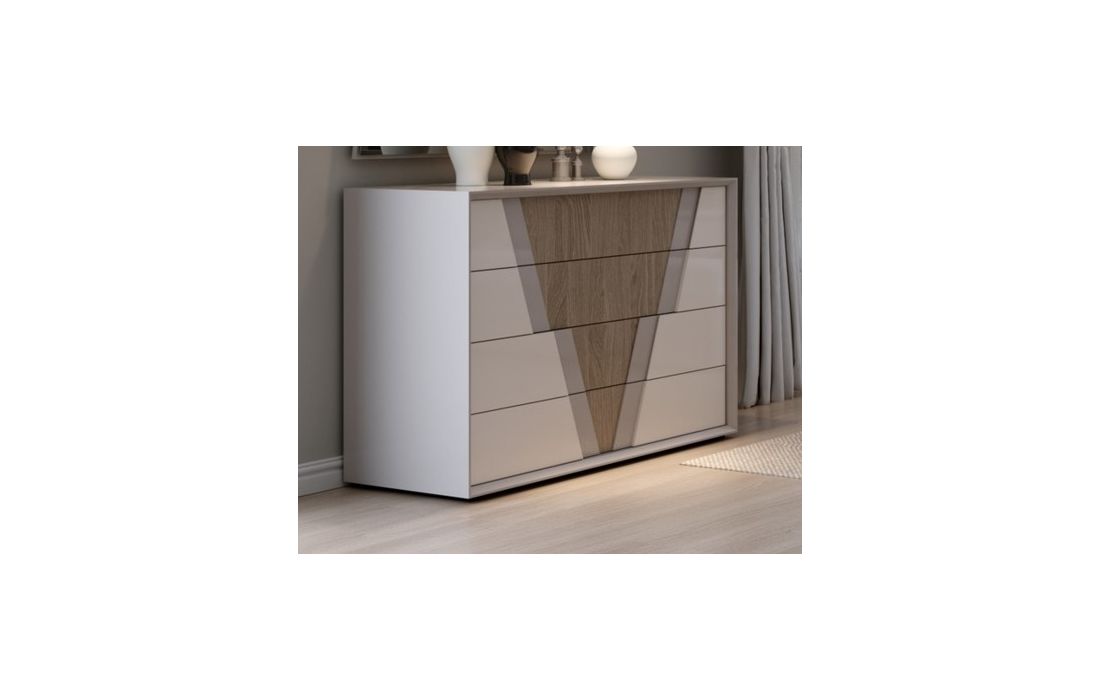 Acabamento igual à imagem: Lacado branco mate com pormenores em carvalho