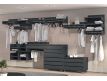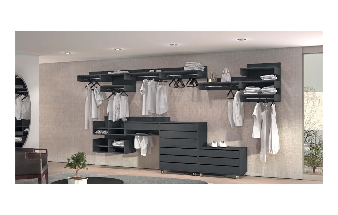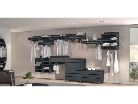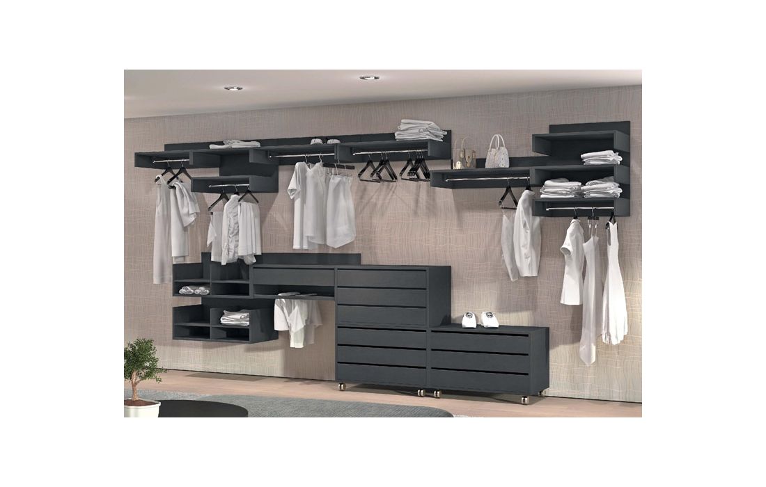 | O vestiário é composto por 6 barões, 9 prateleiras, 2 prateleiras duplas, 1 módulo calceiro, 1 módulo 3 gavetas e 2 módulos 3 gavetas com rodas | ||||||||