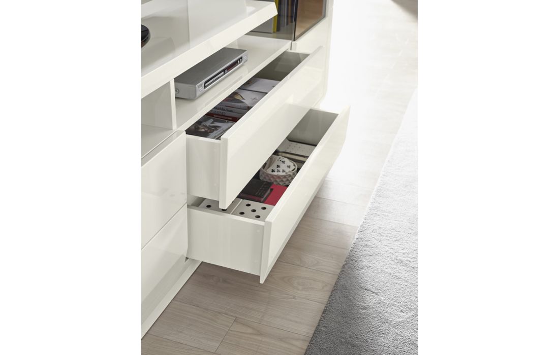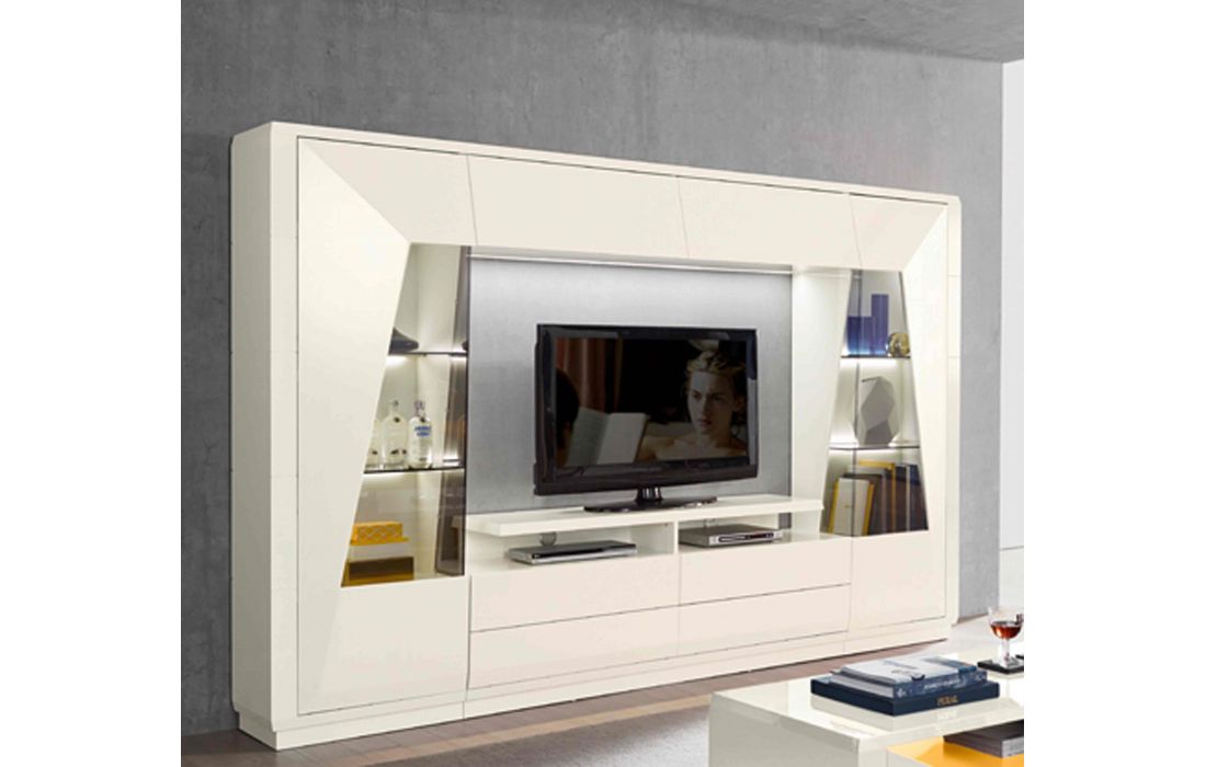 Sala de estar moderna com um design diferente. Pode ser acabada em lacado alto brilho, mate ou folha de madeira