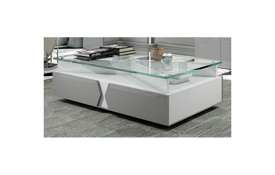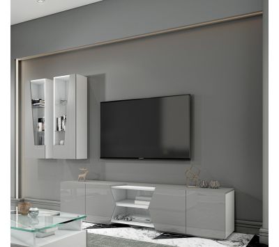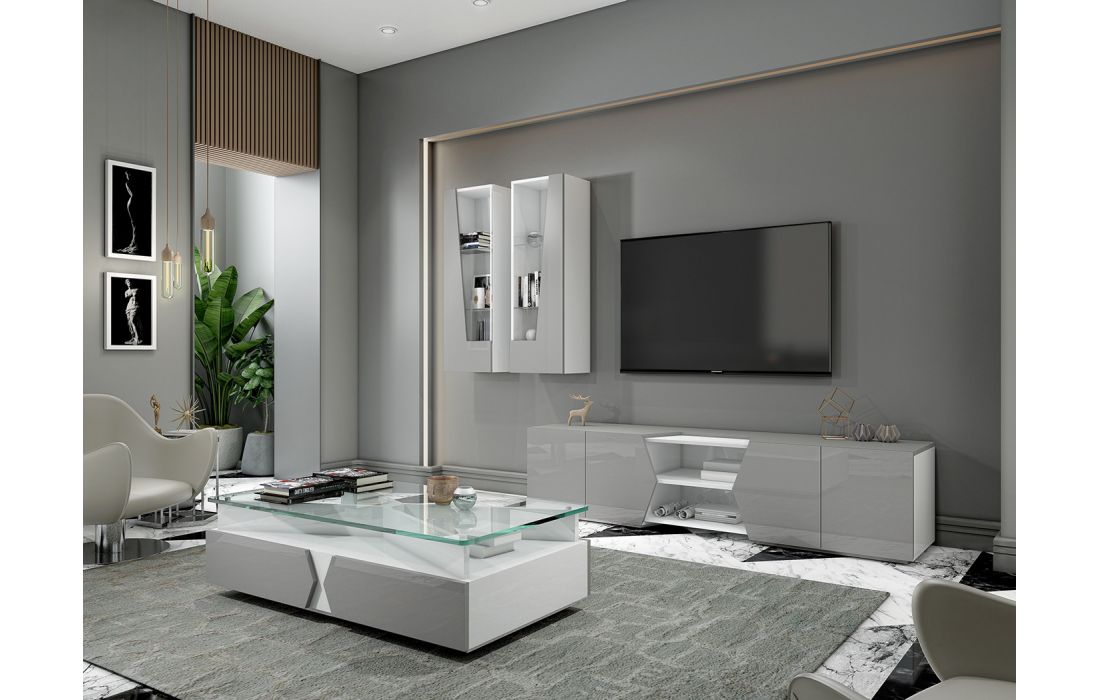 Acabamento igual à imagem: Lacado branco mate com pormenores em carvalho