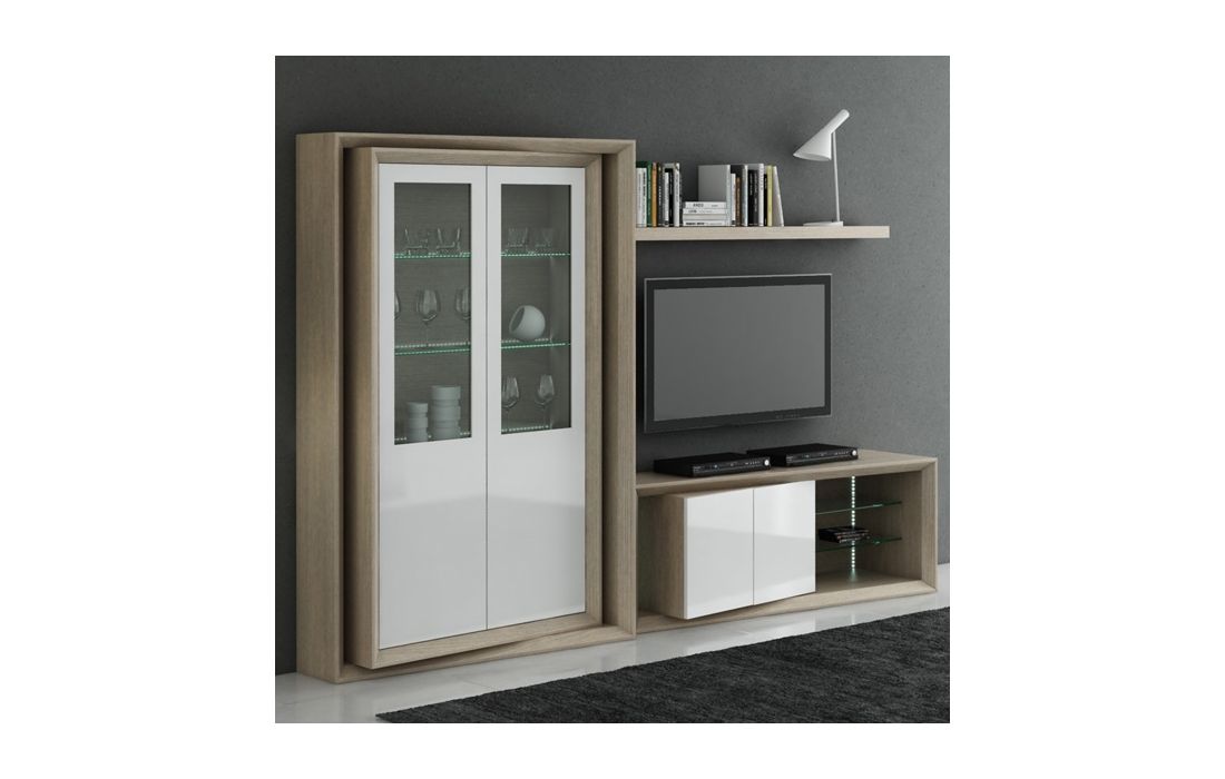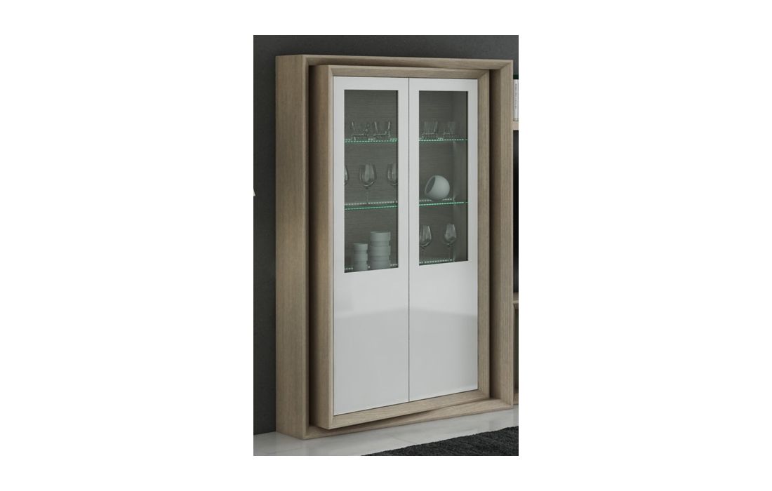 | Móvel alto com 2 portas e 3 prateleiras de vidro e 1 de madeira | ||||||||