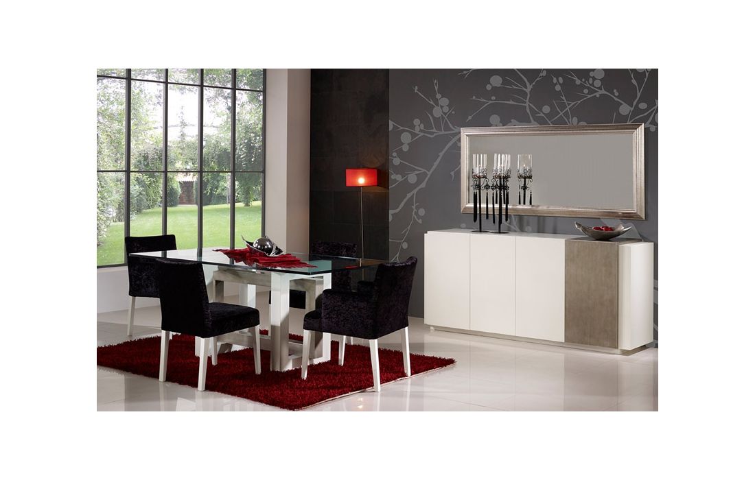 | Sala de jantar em lacado mate c/ lacado em prata envelhecida | ||||||||