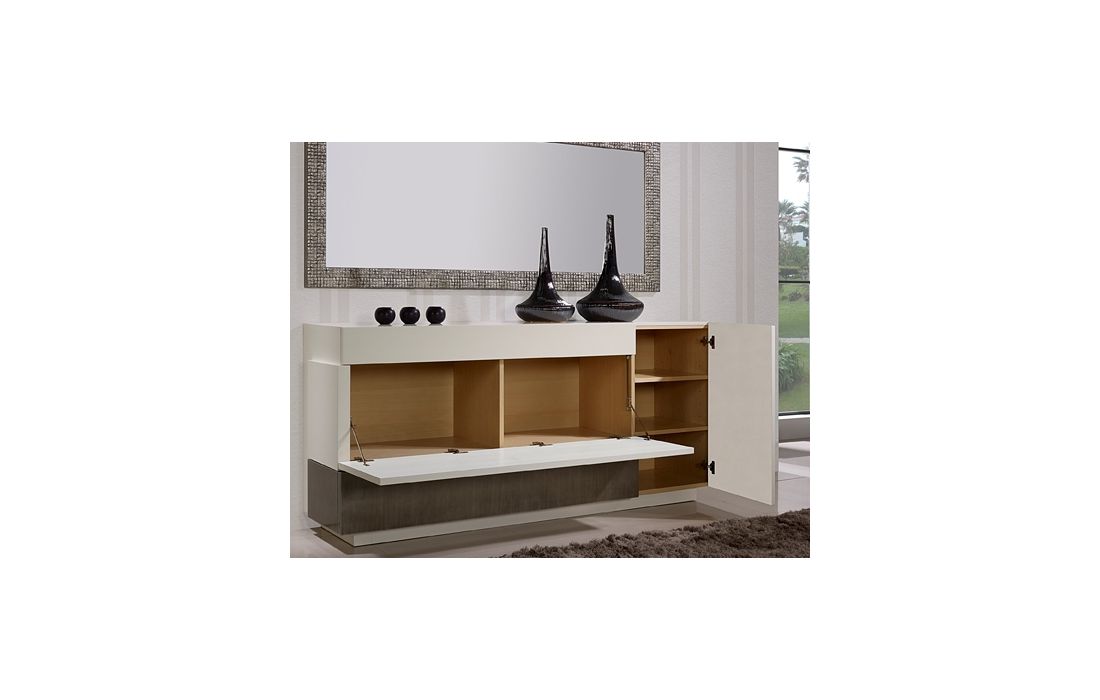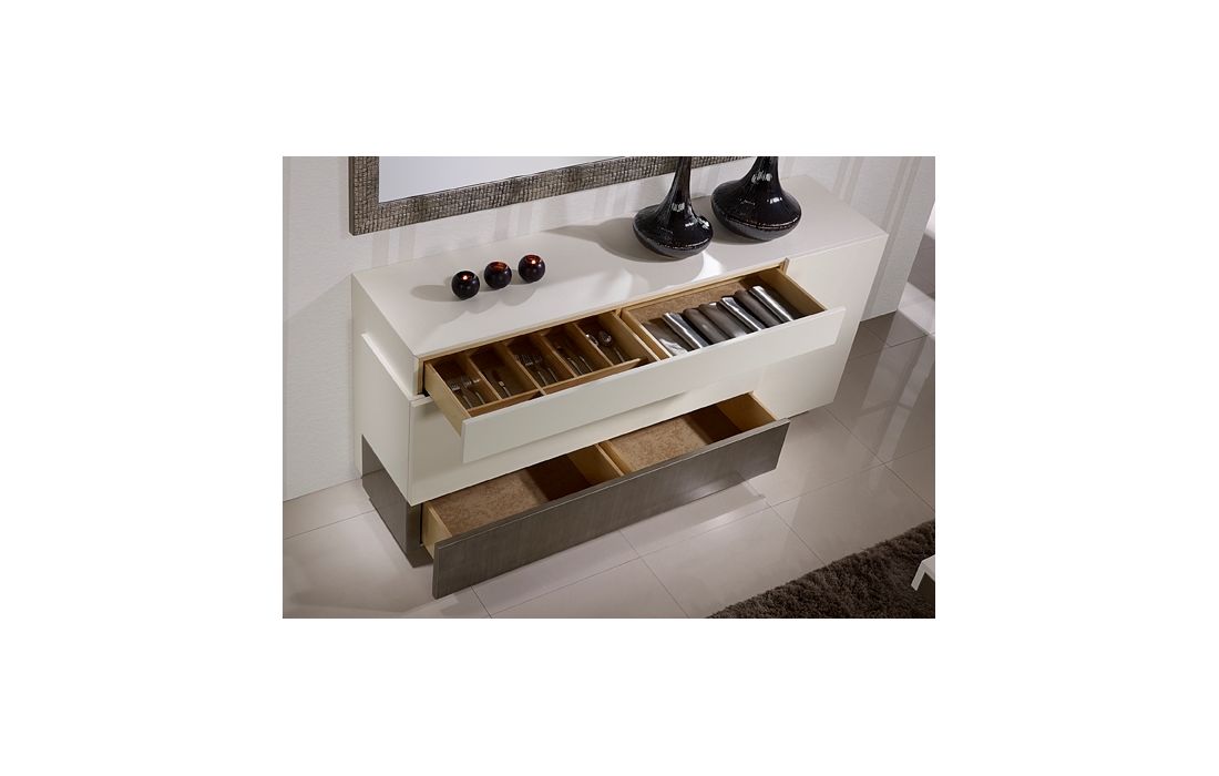 | Sala de jantar em lacado mate c/ lacado em prata envelhecida | ||||||||