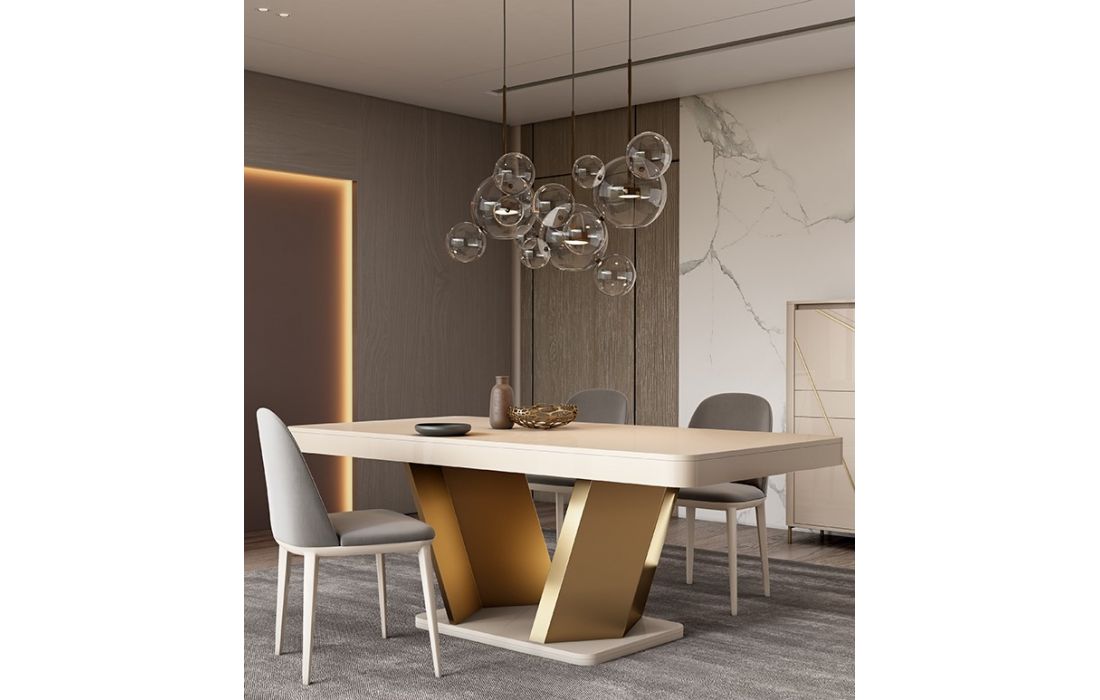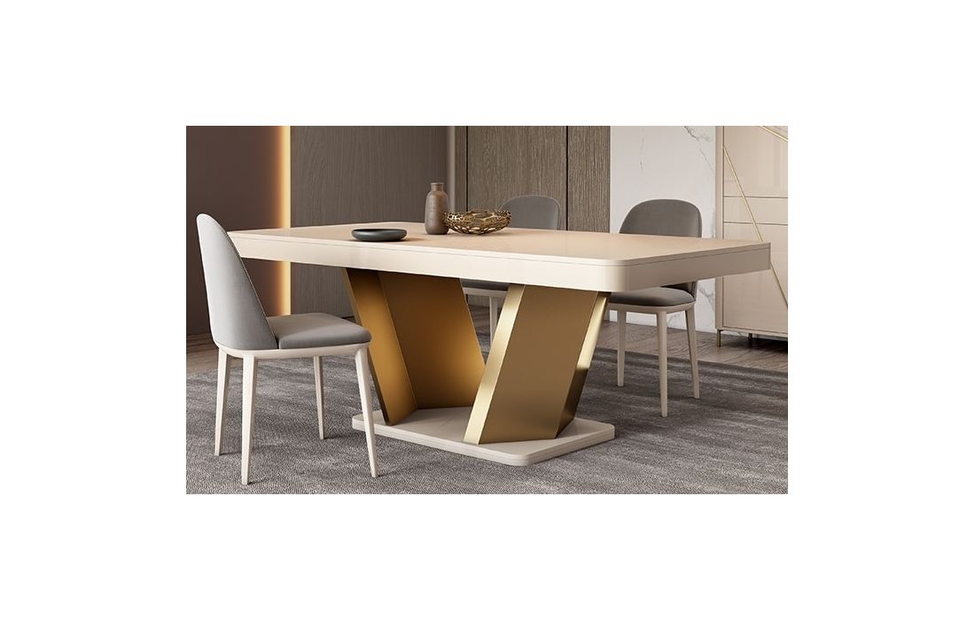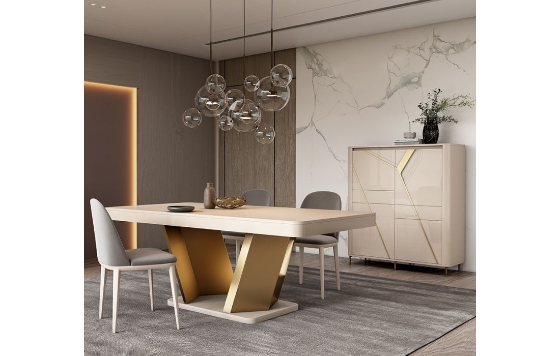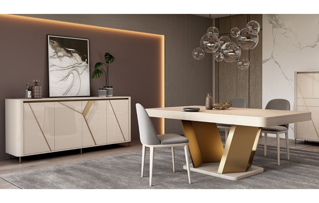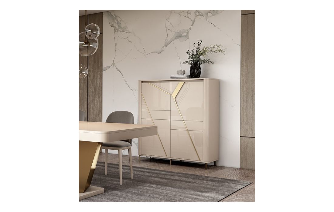 Acabamento igual à imagem: Lacado bege claro L1013 + pormenores em inox dourado