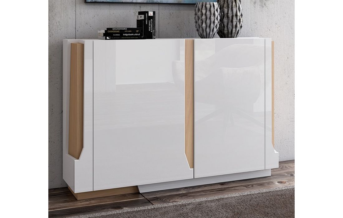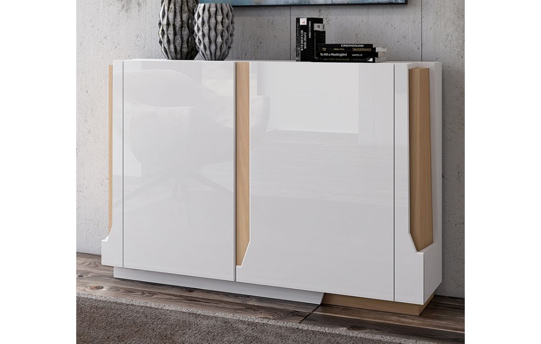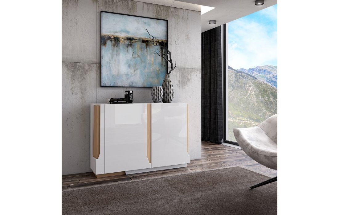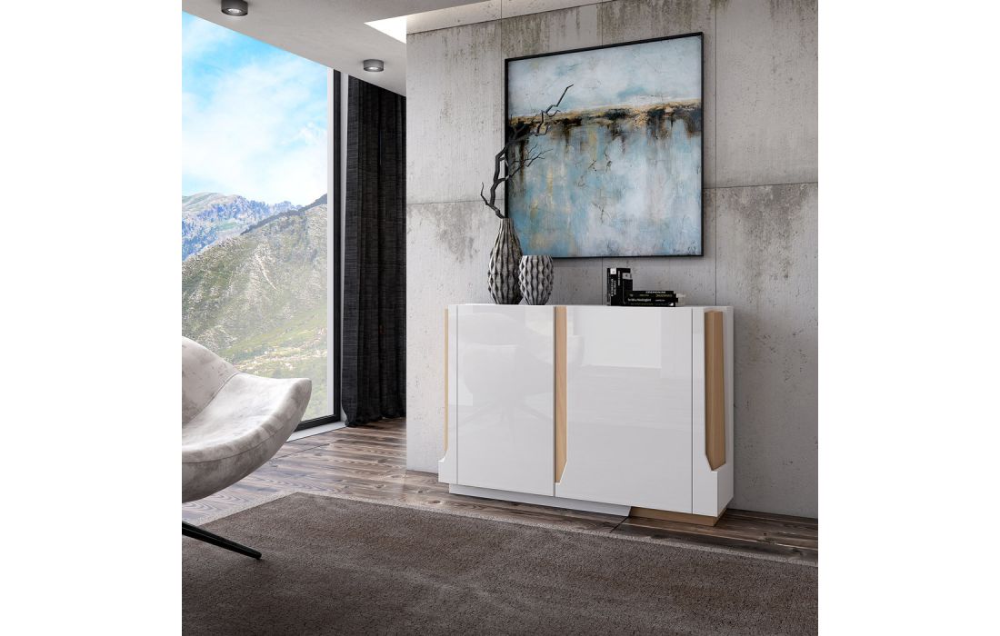 Acabamento igual à imagem: Lacado branco mate com pormenores em carvalho