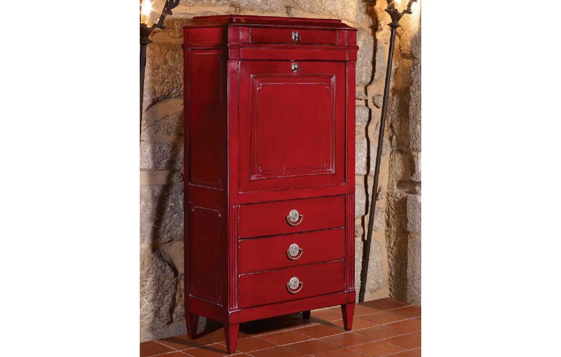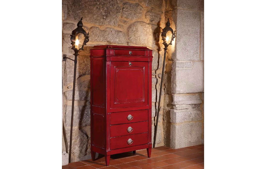 Secretária com 1 porta e 4 gavetas, design provençal com possibilidade de vários acabamentos.