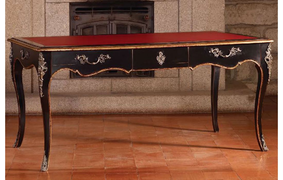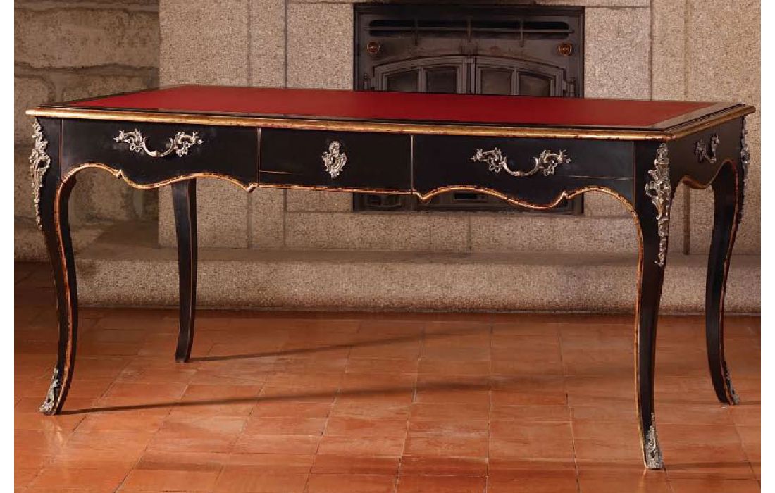 Secretária com 3 gavetas,design provençal e pormenor em folha de ouro com possibilidade de vários acabamentos.