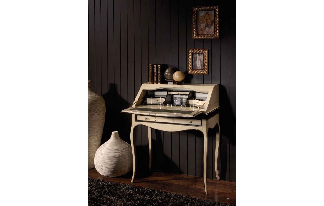 Secretária com 1 gaveta e 1 porta de cair, design provençal com possibilidade de vários acabamentos.