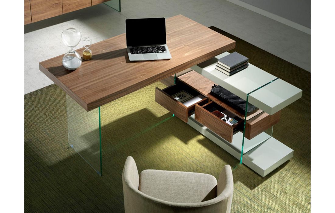 | 978OT | 1 | Secretária em folha de madeira de nogueira c/ lados em vidro temperado e lacado de outras cores | C 140 A 75 P 127 | |||||