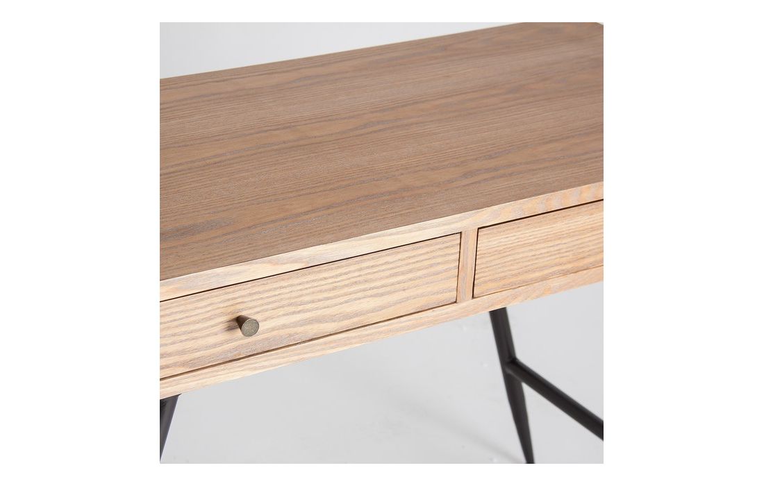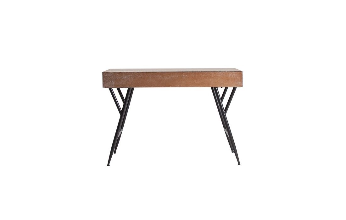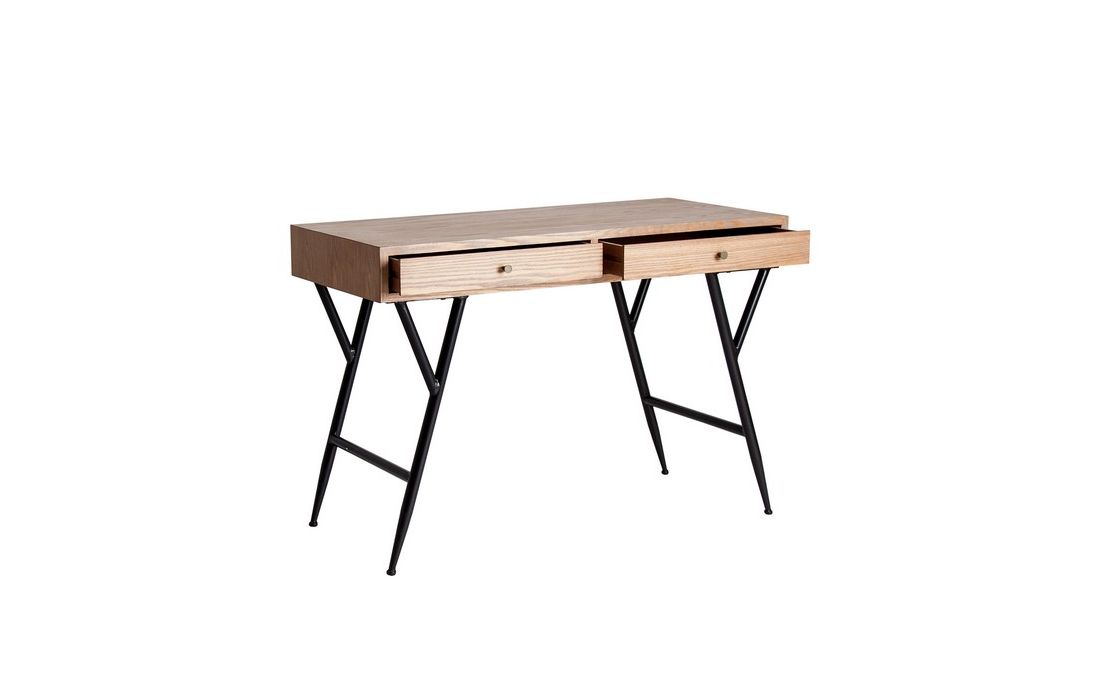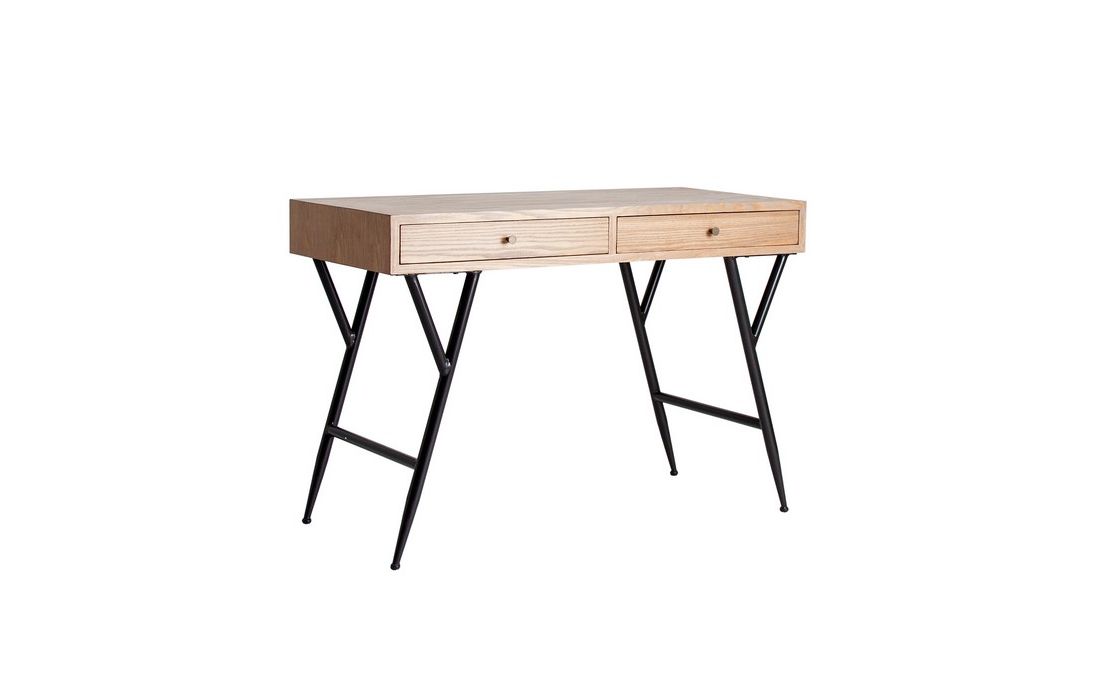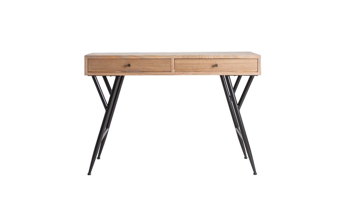 Secretária de feita de madeira de abeto e ferro na cor preto com duas gavetas.
