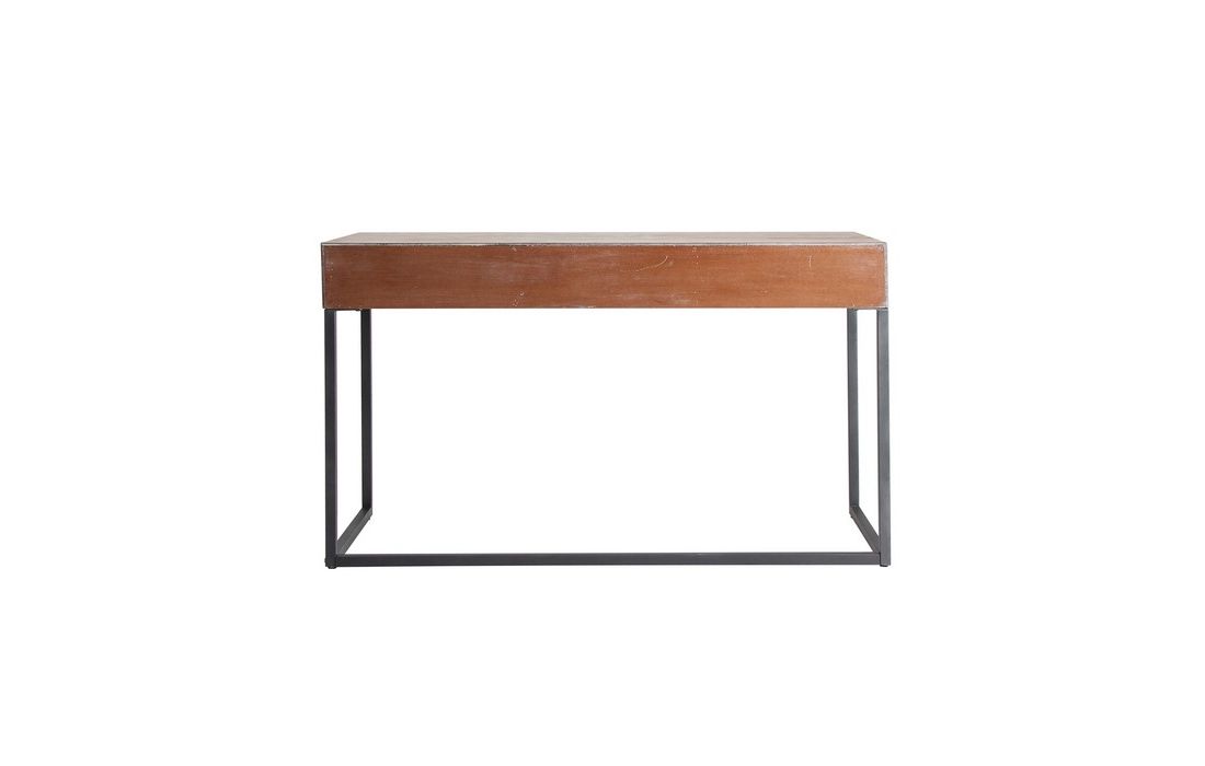 Secretária feita em ferro que com três pequenas gavetas em madeira de abeto.