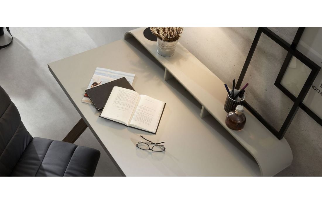 | Secretária com tampo em fibra de madeira lacada mate | ||||||||
