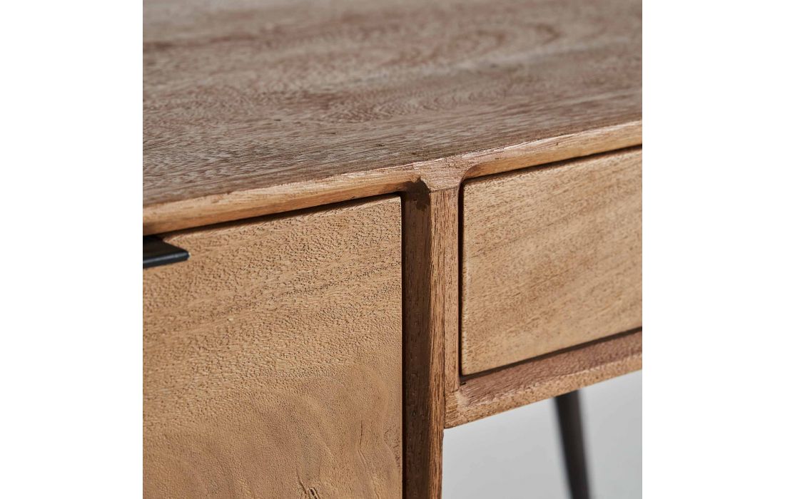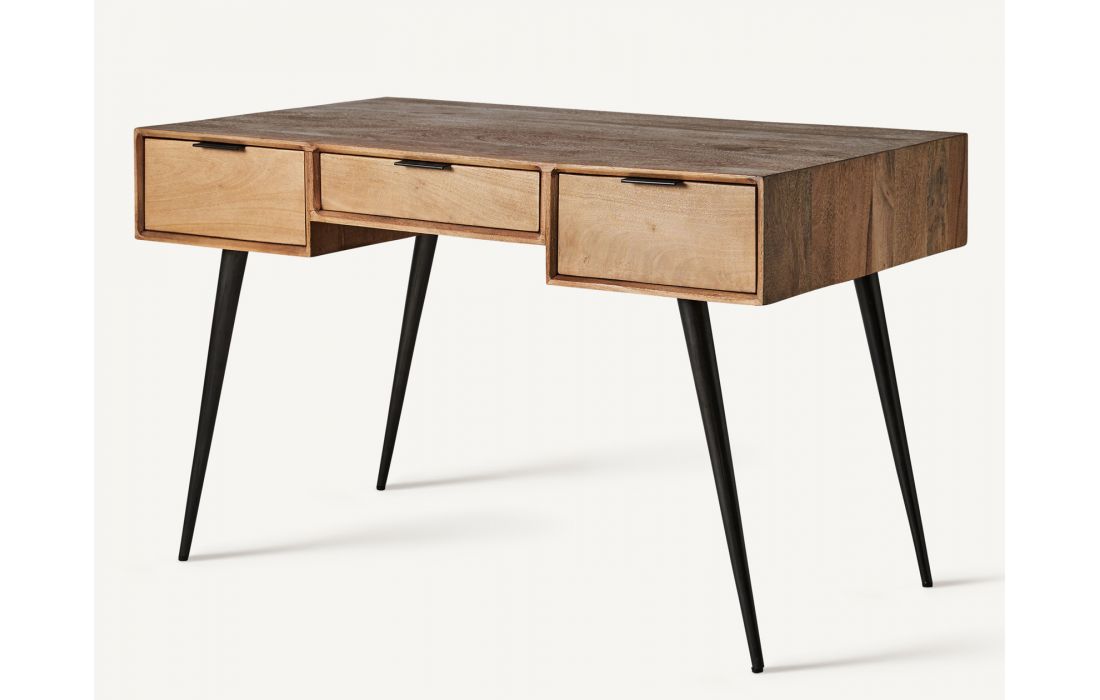 Secretaria de 3 gavetas em madeira de manga cor natural e pés de metal preto