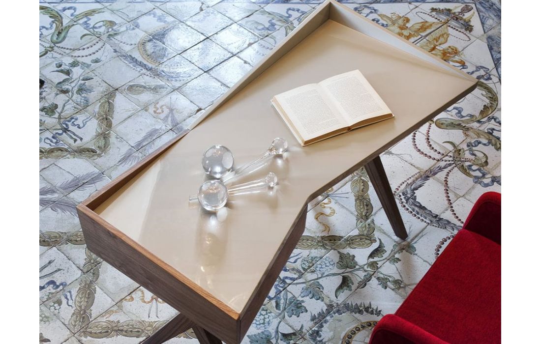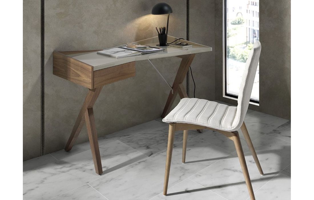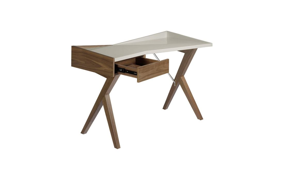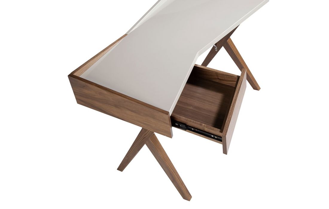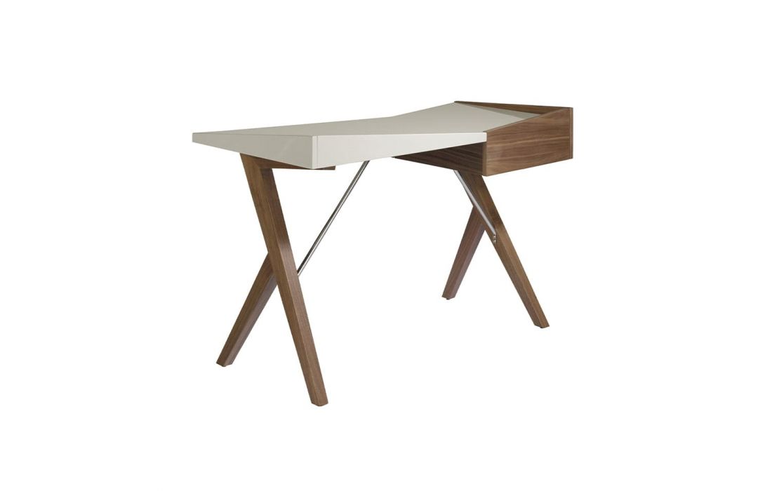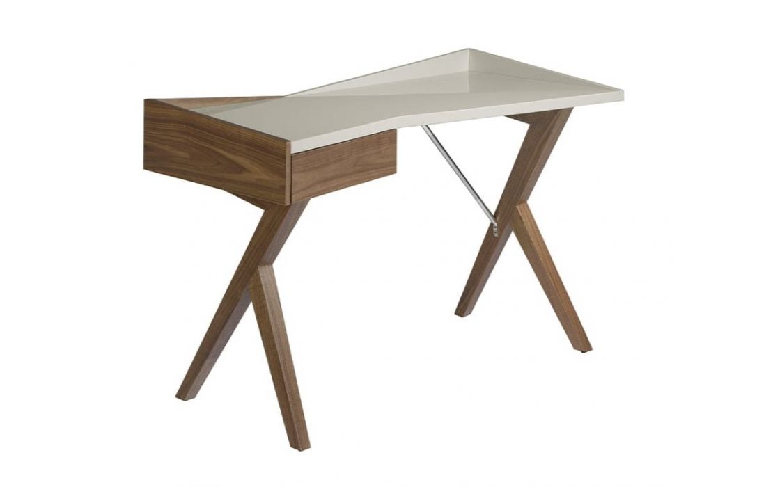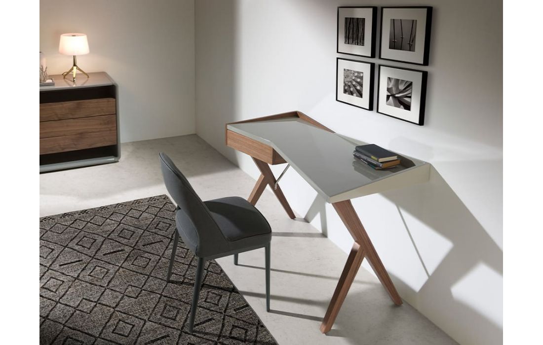 Secretaria de design moderno com tampo em MDF e estrutura em MDF de nogueira natural, as suas pernas de MDF a nogueira natural e 1 gavetaDestinatário :