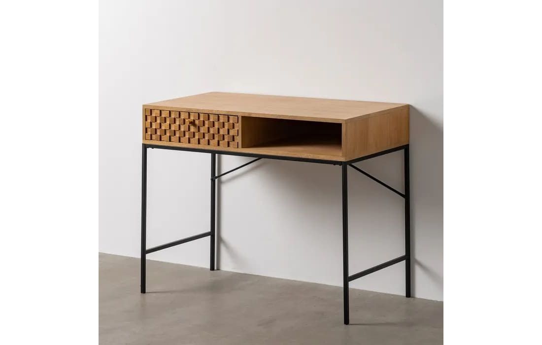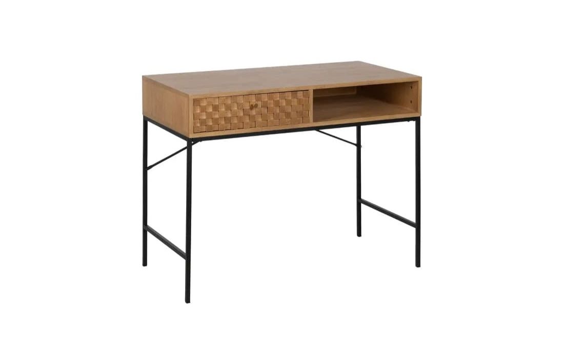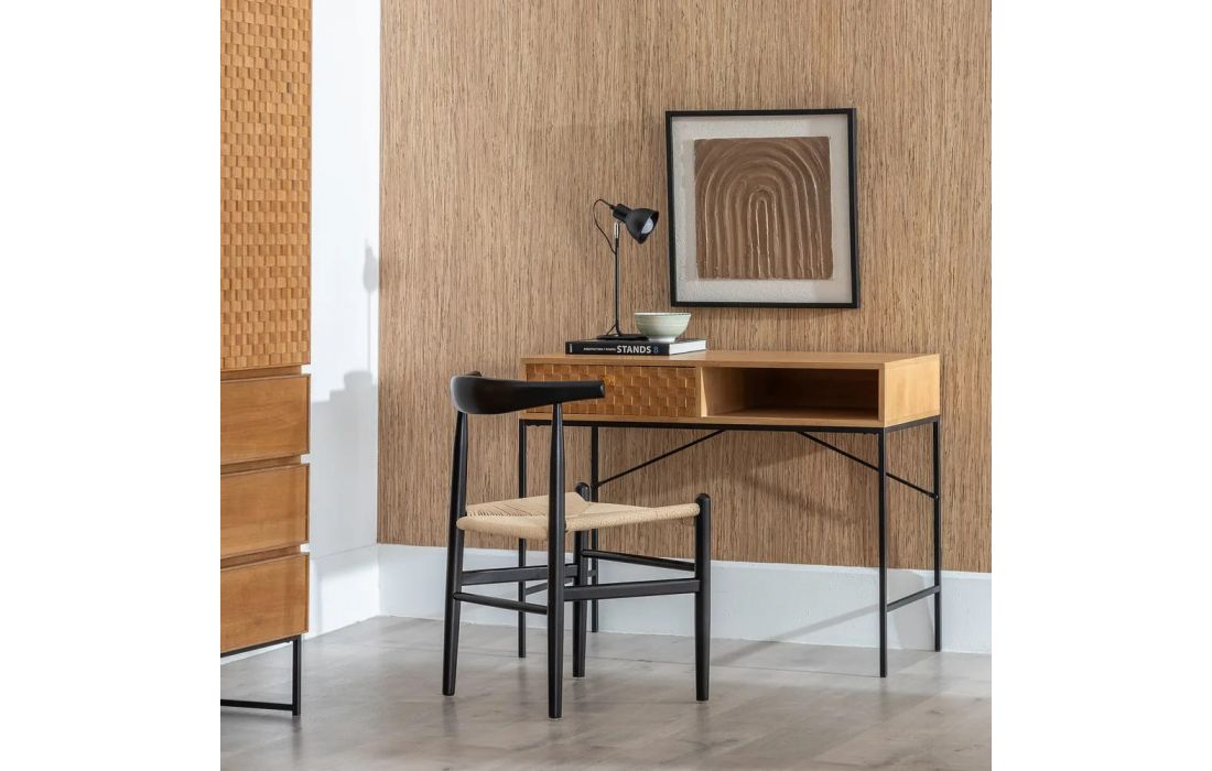 Secretária em madeira de freixo na cor natural e ferro preto.