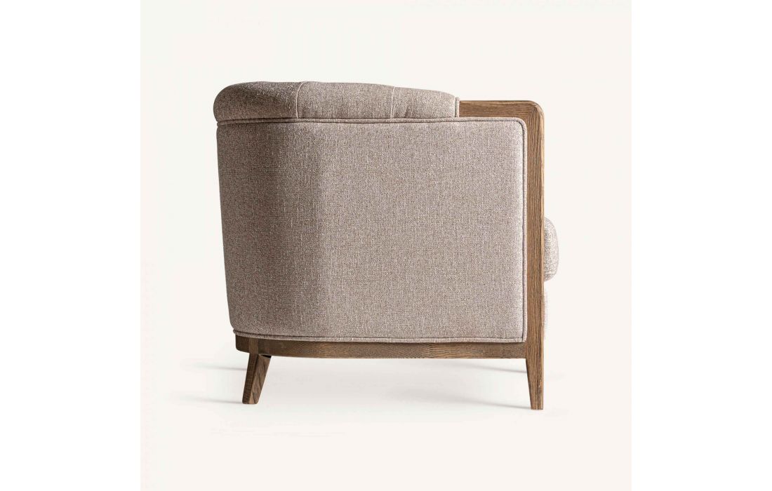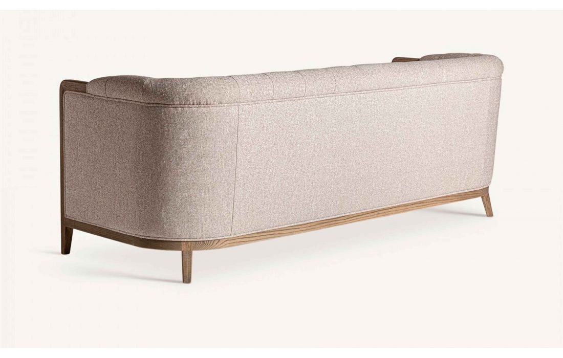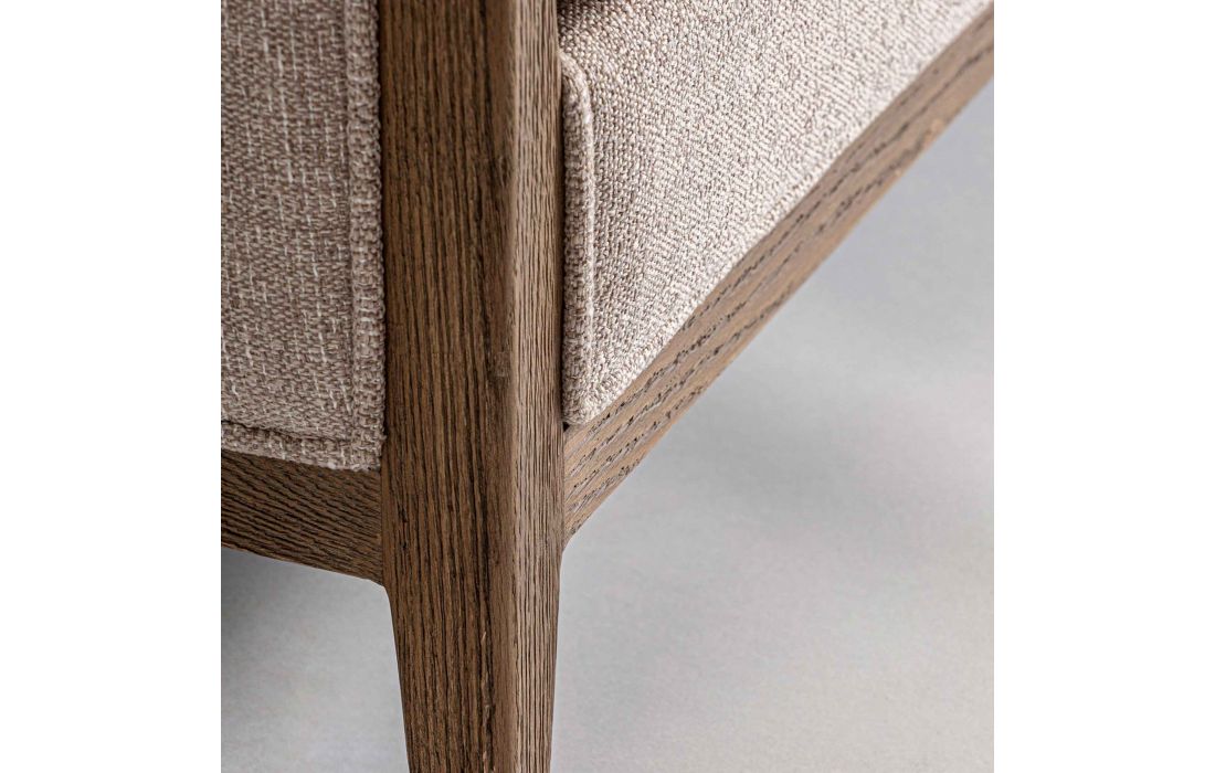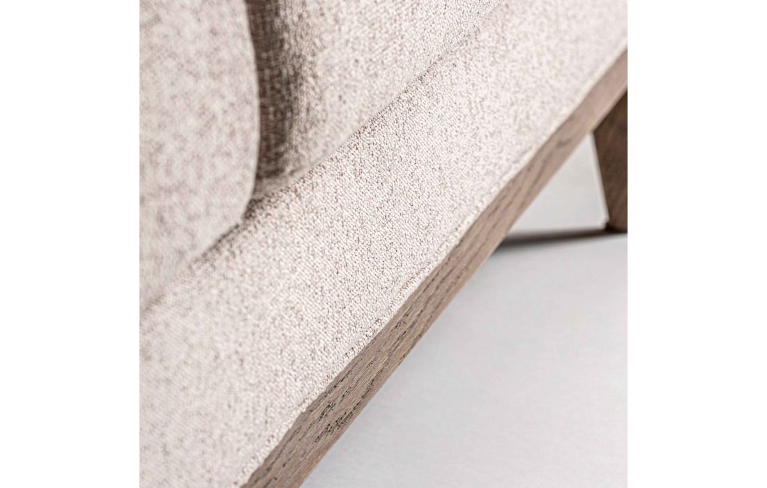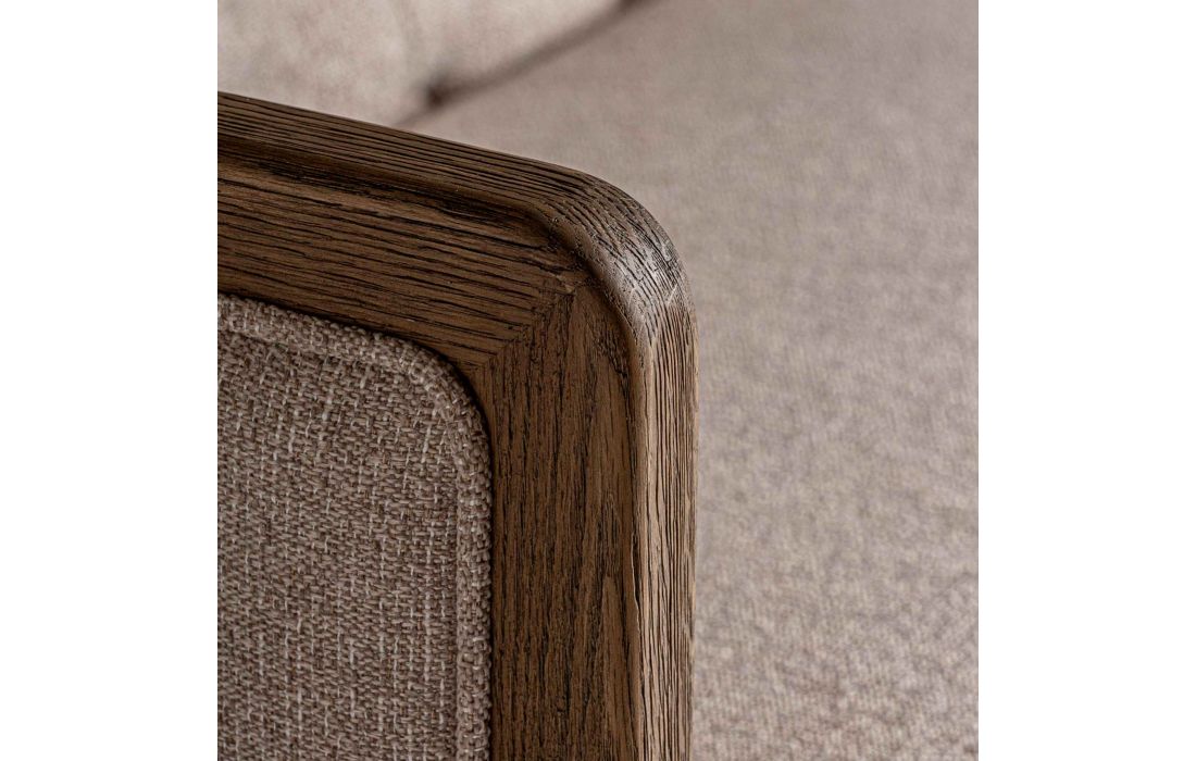 Sofá de tecido combinado com madeira de freixo