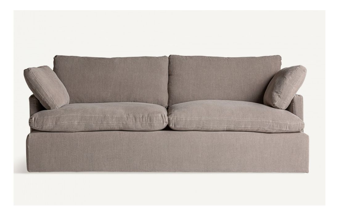 Sofá de linho na cor cinzento combinado com algodão e espuma