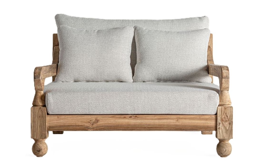 Sofá fabricado em madeira de teca reciclada e polipropileno, é uma peça modular que permite a criação de arranjos personalizadosDestinatário :