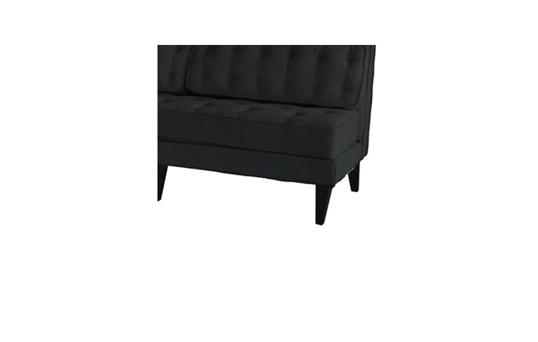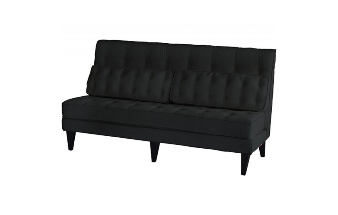 Sofá revestido em tecido com pés em madeira.